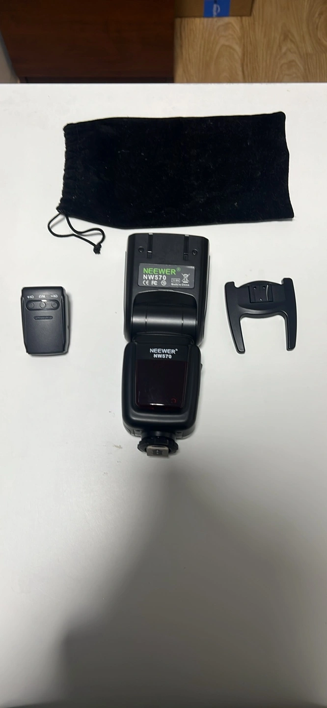 Selling a Neewer NW570 Speedlite flash. It comes with a transmitter, a stand, and a carrying bag. Great for photography enthusiasts! Pickup near Abbotsford Centre