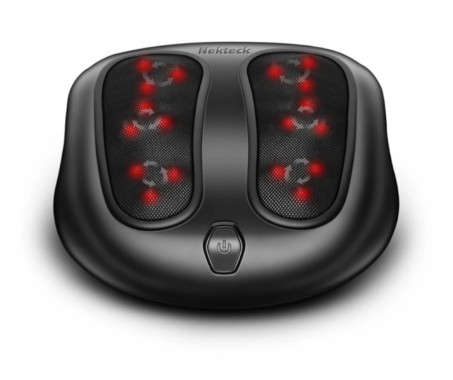 Get ready to relax with this Nekteck Foot Massager Machine! It features: - 6 massage heads - 54 massage nodes - Soothing heat It's super easy to use with convenient toe-touch control, so you don't have to bend over to turn it on or off. You can use it for foot, calf, hamstring, or back massage. Comes with the user manual and built-in adapter