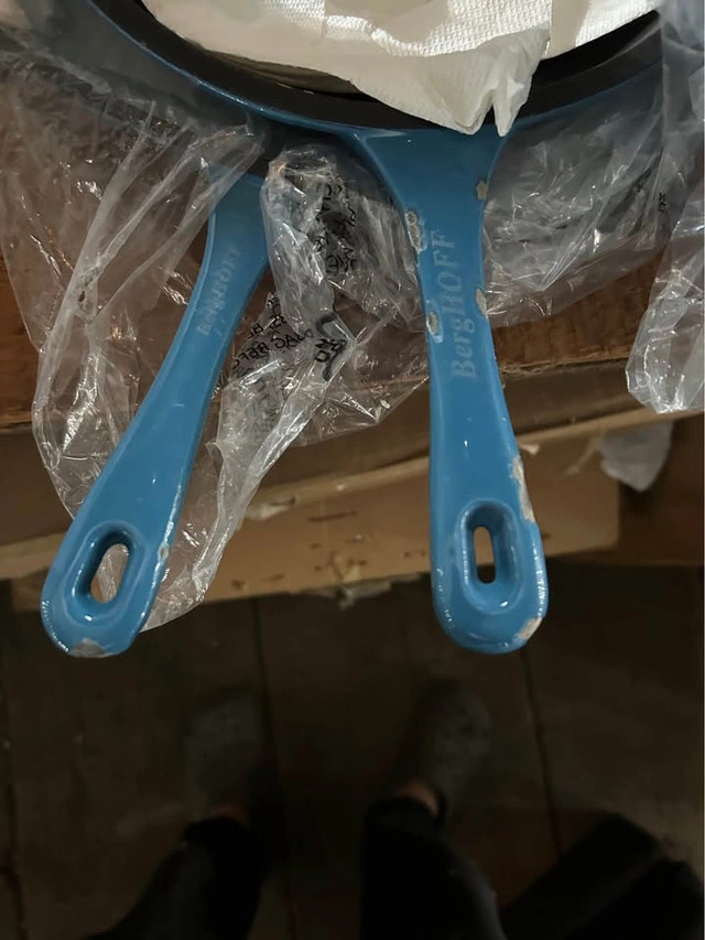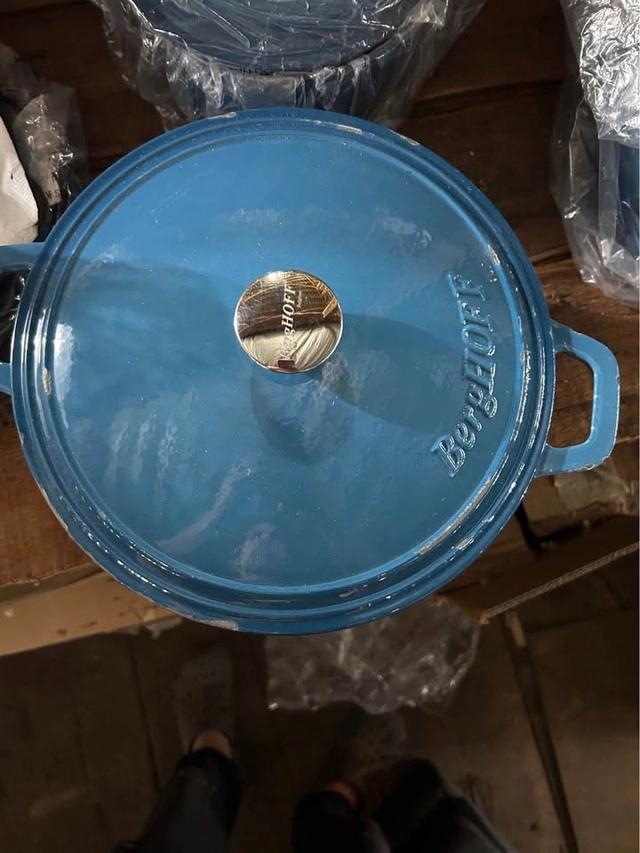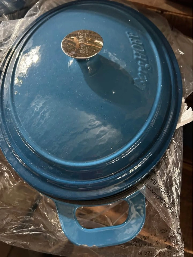 Note, item has chips out of some of the handles and edges. Item is brand new otherwise and is unused. Pictures show the chips. Price reflects it as this set is over $800 online. The cookware set is a modern collection that marries function, design, and innovative use of materials to create an outstanding line of cookware. The Neo cast iron is marked by pure lines giving each product its own identity and functionality. The covered casseroles are ideal for slow cooking stews, braising, baking and so much more. It is enameled inside and out and suitable for all heat sources including, gas, electric, induction, and ceramic. The frying pans are oven safe, up to 400 degrees. Safe to use on any heat source, including induction. What's Included? 1 Grill Pan 1 Dutch Oven 4 Lid 3 Casserole Pan 1 Frying Pan / Skillet Item is located in Port Robinson and if listed it is available.