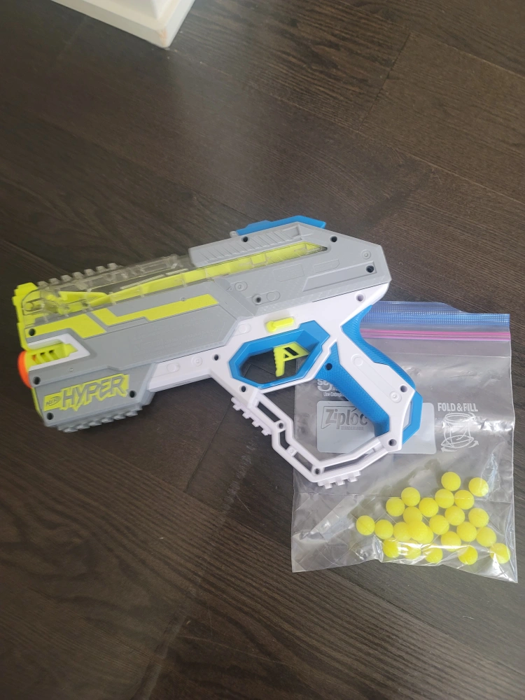 Selling a Nerf Hyper Siege-50 blaster! It's in great condition and comes with a bag of the yellow Hyper rounds. Ready for some action!