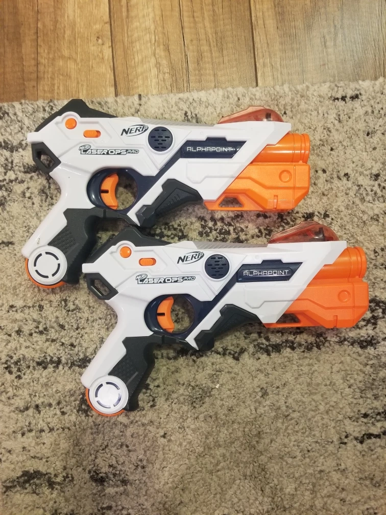 Selling a set of two Nerf Laser Ops Pro Alphapoint blasters! They're in great shape and ready for some fun laser tag. Get ready for some action-packed games with these cool blasters batteries not included