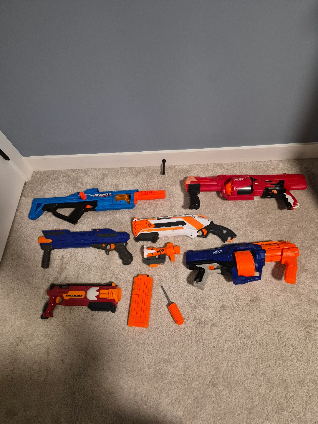 Selling a bundle of Nerf and X-Shot blasters! Great for some backyard fun. Includes a variety of different models and some accessories. Ready for a new home!