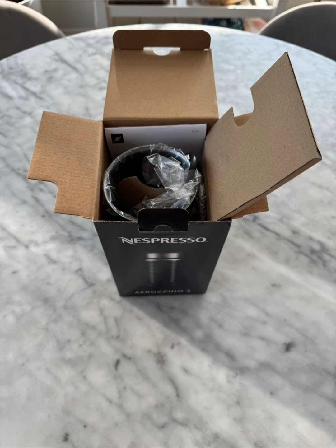 Selling a brand new Nespresso Aeroccino 3 milk frother, still in its original box! It's perfect for making delicious lattes and cappuccinos at home. The box includes all original components and instructions. Get ready to enjoy barista-quality frothed milk with ease. Brand new! Has not been opened or touched. FYI: Cash only!