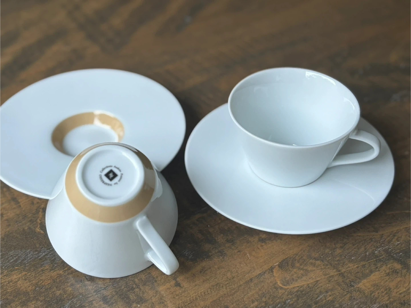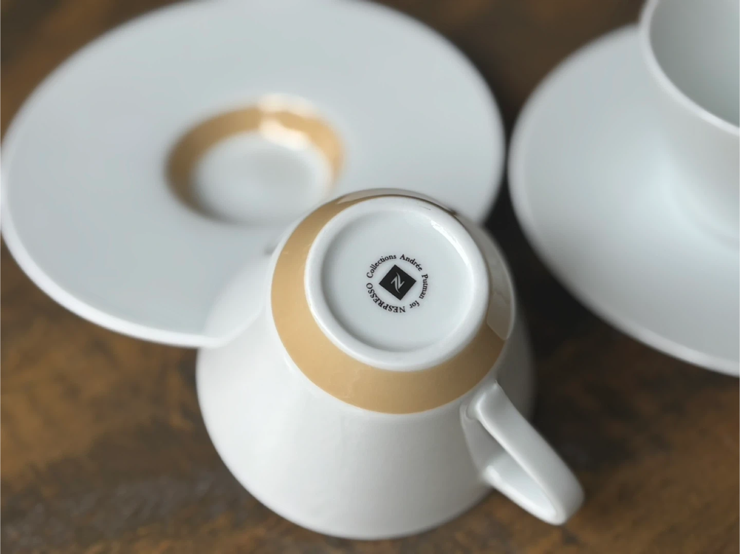 Here's a set of Nespresso espresso cups and saucers designed by Andrée Putman! They're in great shape and ready for your next coffee break.