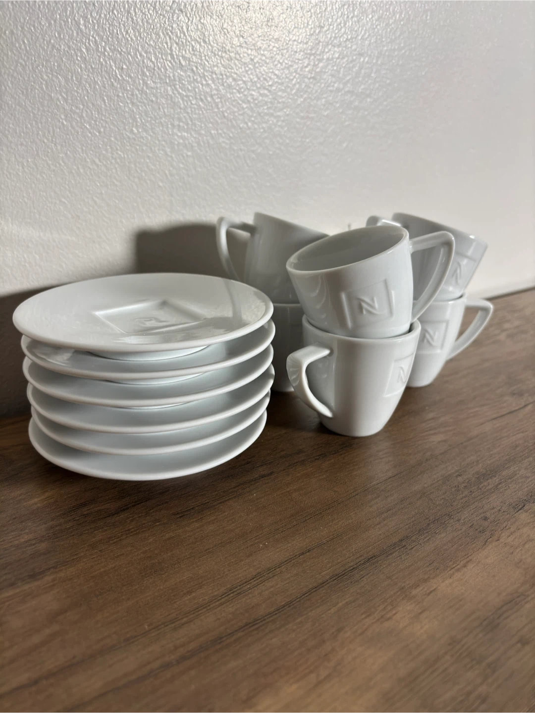 Brew and serve your espresso in style with this complete Nespresso porcelain espresso set. Details: • Brand: Nespresso • Material: Premium porcelain • Set Includes: 6 espresso cups + 6 saucers (full set) • Condition: New – never used Price: $60 for the complete set Cash or e-transfer on the spot is accepted. Pick up in NDG.