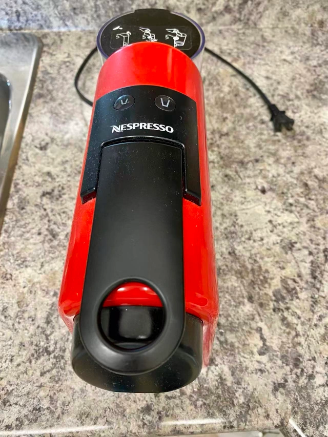 Selling a Nespresso Essenza Mini coffee machine in red. It's in great shape and ready to make delicious coffee! Compact and easy to use, it's perfect for small spaces. Enjoy fresh, barista-quality coffee at home with this handy machine