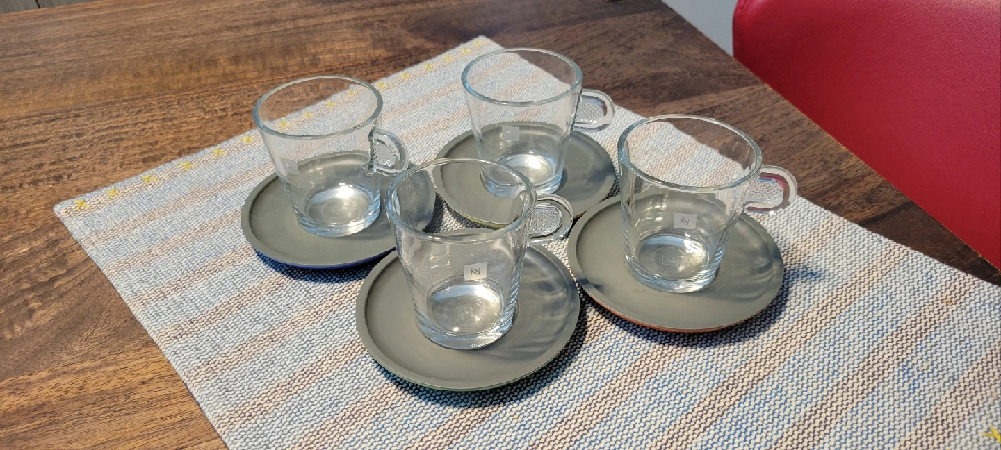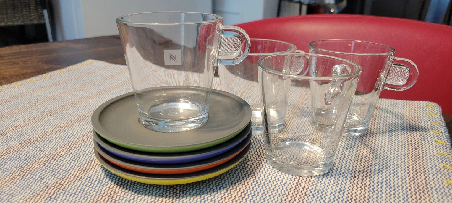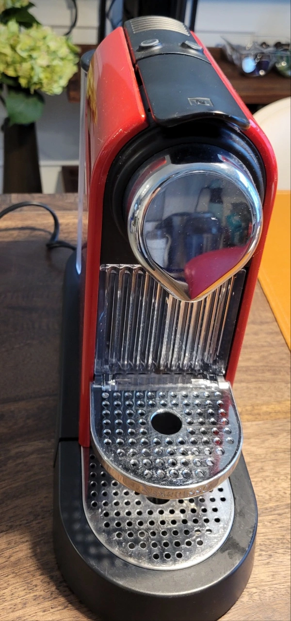 Selling a Nespresso coffee machine in red! It's super compact and easy to use. Also included are four Nespresso cups.