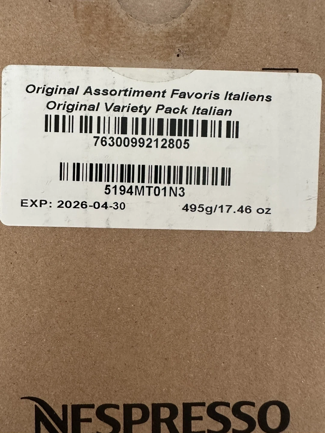 Selling a Nespresso Original Assortment Favoris Italiens Variety Pack! Expiry date is 2026 April 30. Enjoy a variety of Italian-inspired coffee flavours with this assortment