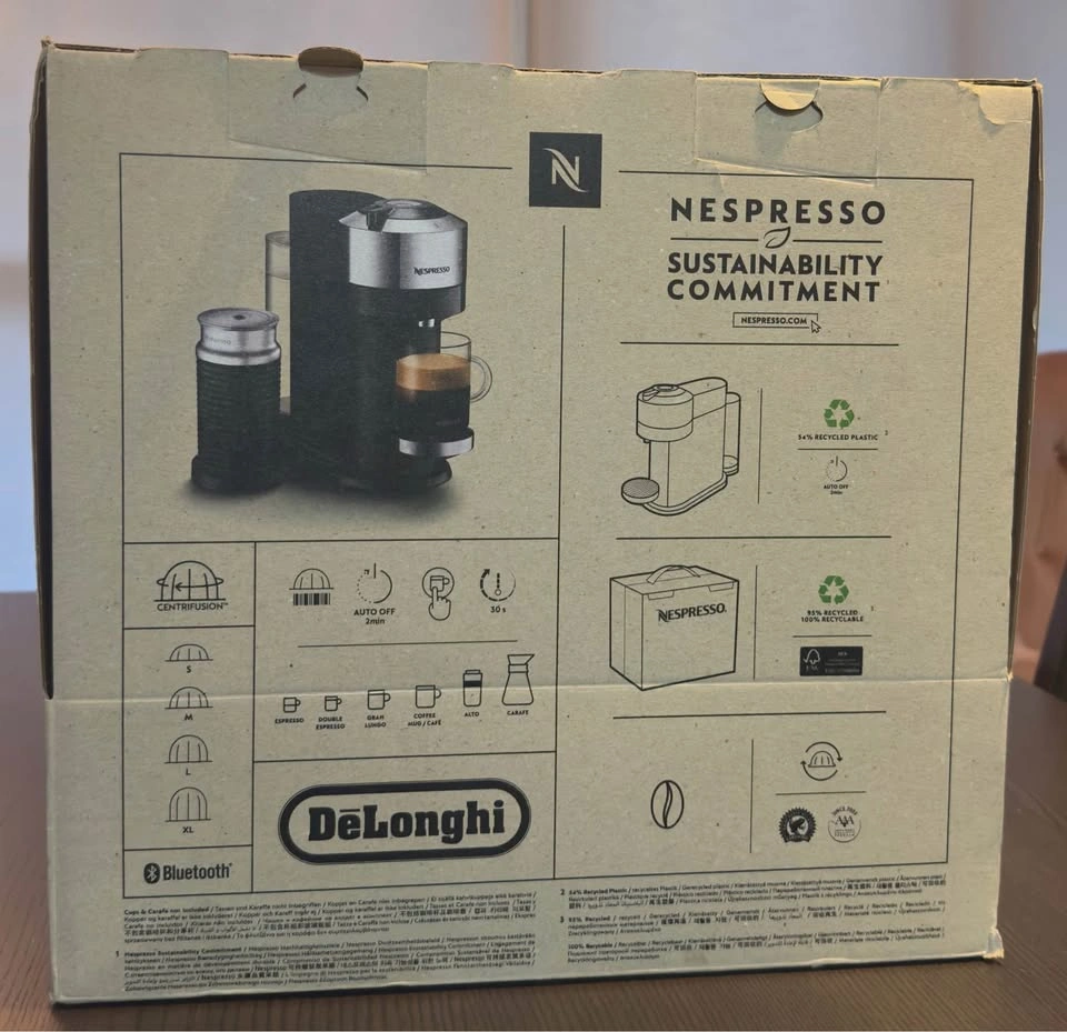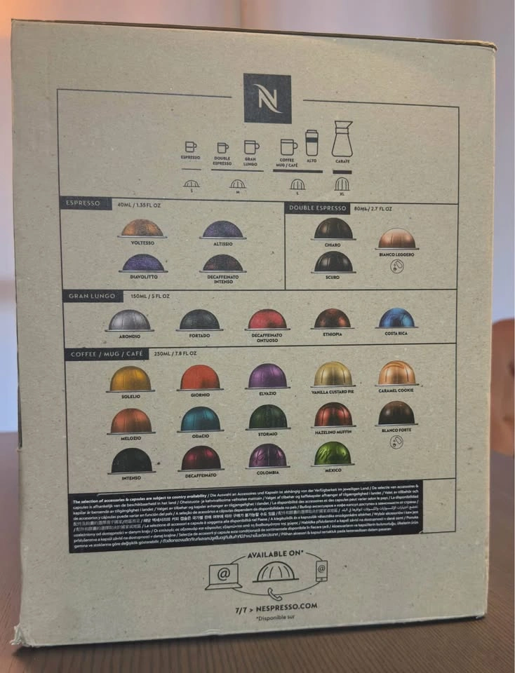 Versatile cup sizes: One machine for 5 coffee sizes, Alto, Mug/Coffee, Gran Lungo and Espresso via 3 different capsule sizes. Large capsule for Alto and Mug/Coffee, Medium for Gran Lungo and Double Espresso and a small one for Espresso. A perfect in cup result every time and for all cup sizes. Naturally formed crema for long cups and traditional Espresso. High convenience and flexibility: Simple 1-button operation, automatic capsule ejection. Thanks to Bluetooth smart technology and WI-FI, Vertuo Next ensures you to always get the best and up-to-date