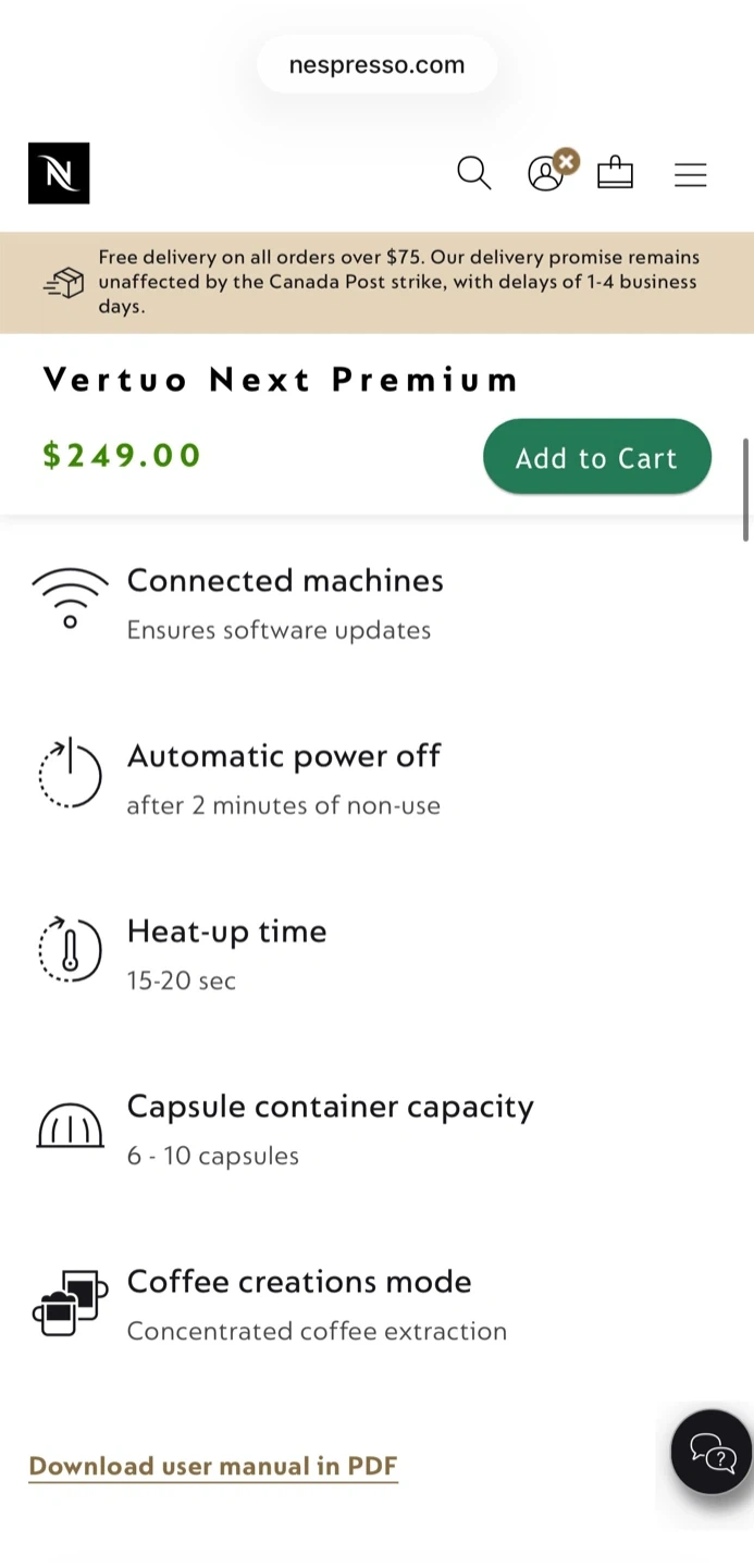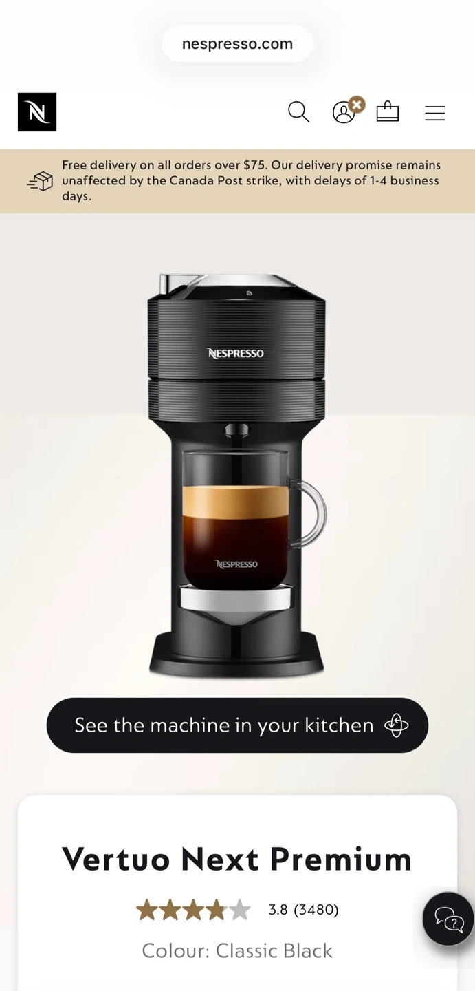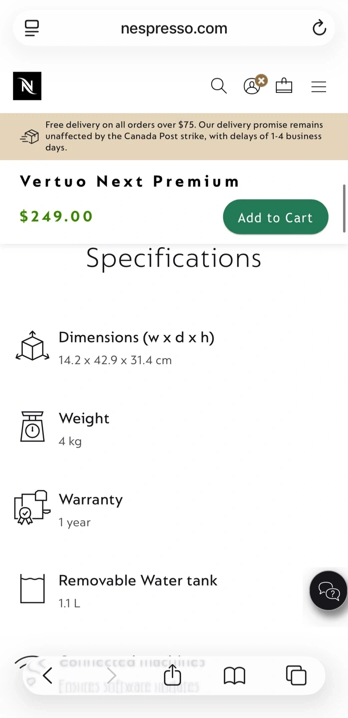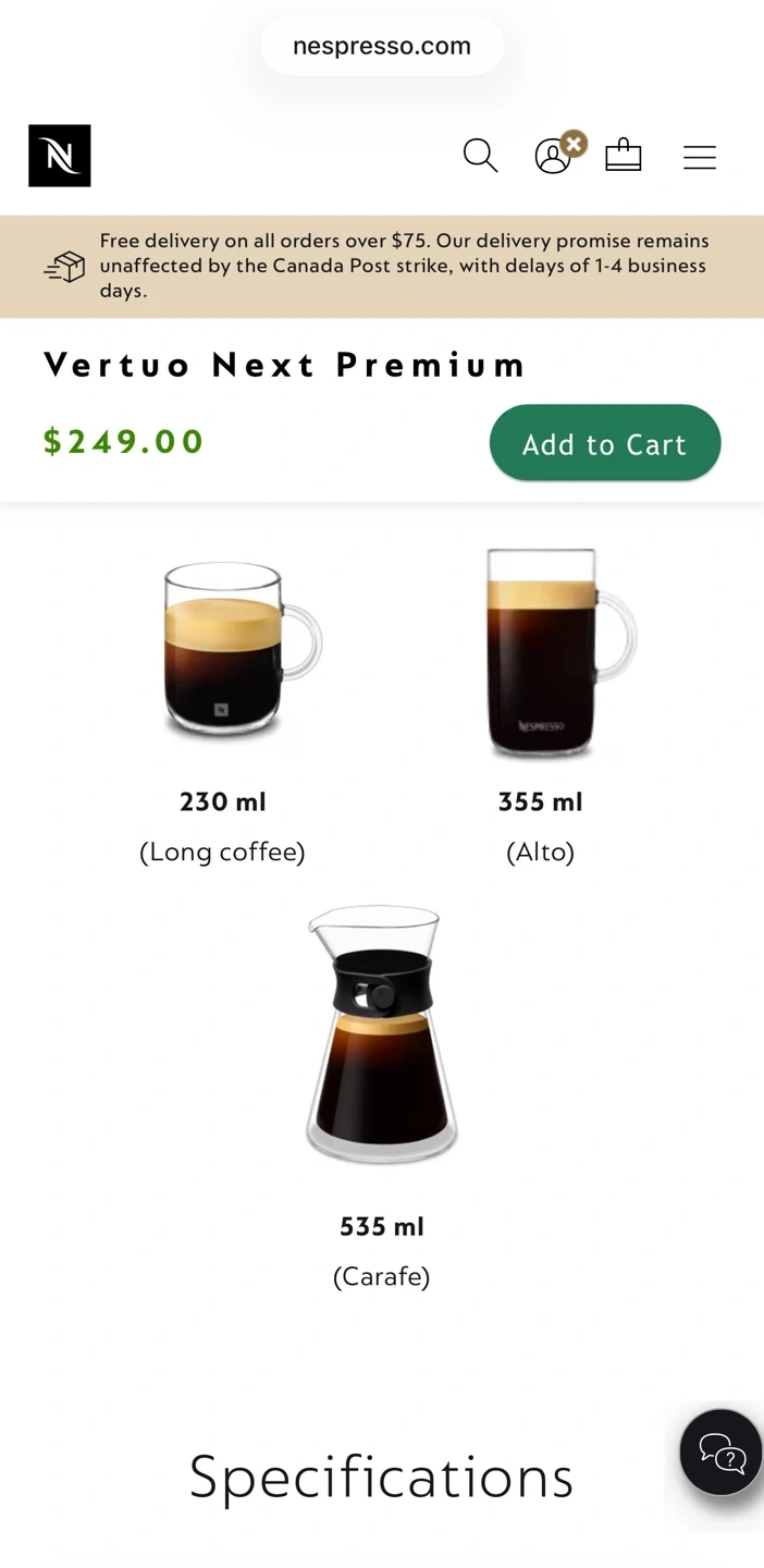 Nespresso Vertuo Next Premium Coffee and Espresso Machine