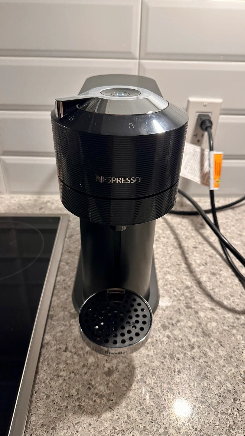 Nespresso Vertuo Next Premium coffee and espresso machine in classic black. In good working condition with some minor scratches on the side as shown in the photos. Perfect for making your favourite coffee at home! Pick up only at Front St and Sherbourne St. Cash only please.