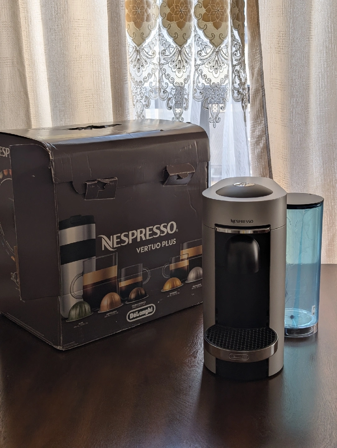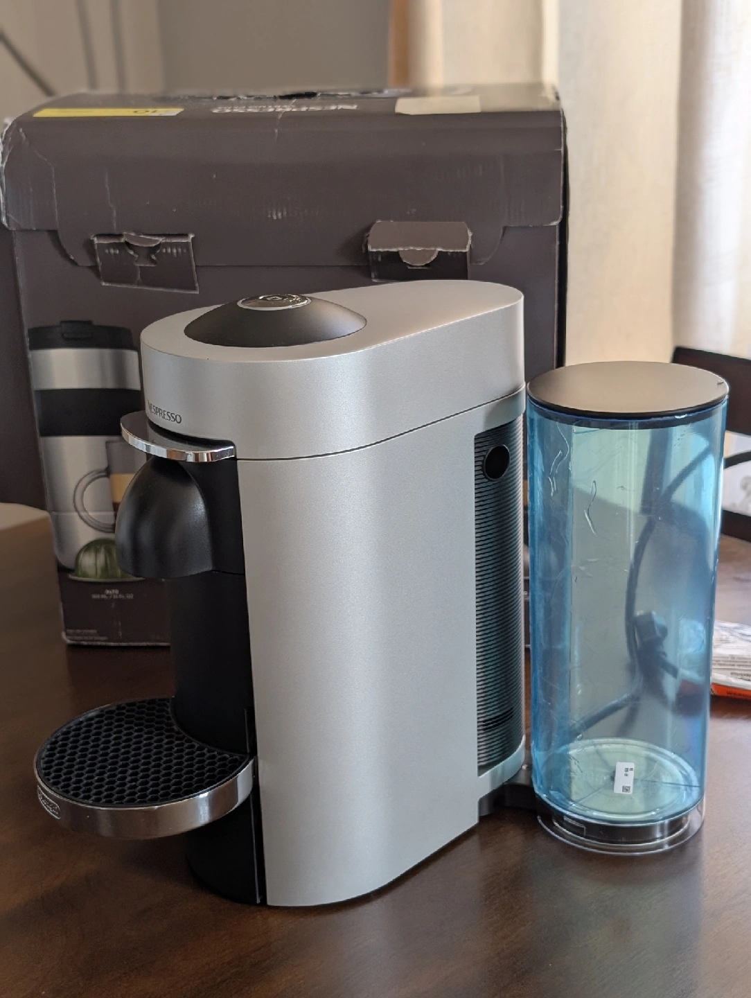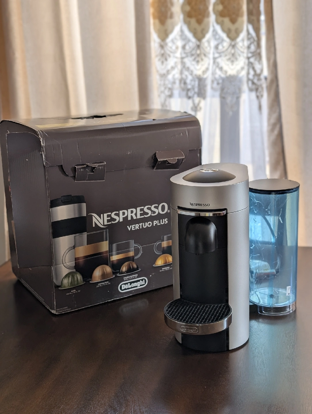 Selling a Nespresso Vertuo Plus coffee machine, les than 1 month of use! It comes with the original box. This machine makes both coffee and espresso with just the touch of a button. Enjoy a variety of different coffee options at home!