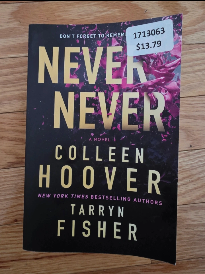 Selling the book Never Never by Colleen Hoover and Tarryn Fisher! It's a novel that will keep you gripped with its twists and turns. Perfect for anyone who loves a good mystery and compelling characters