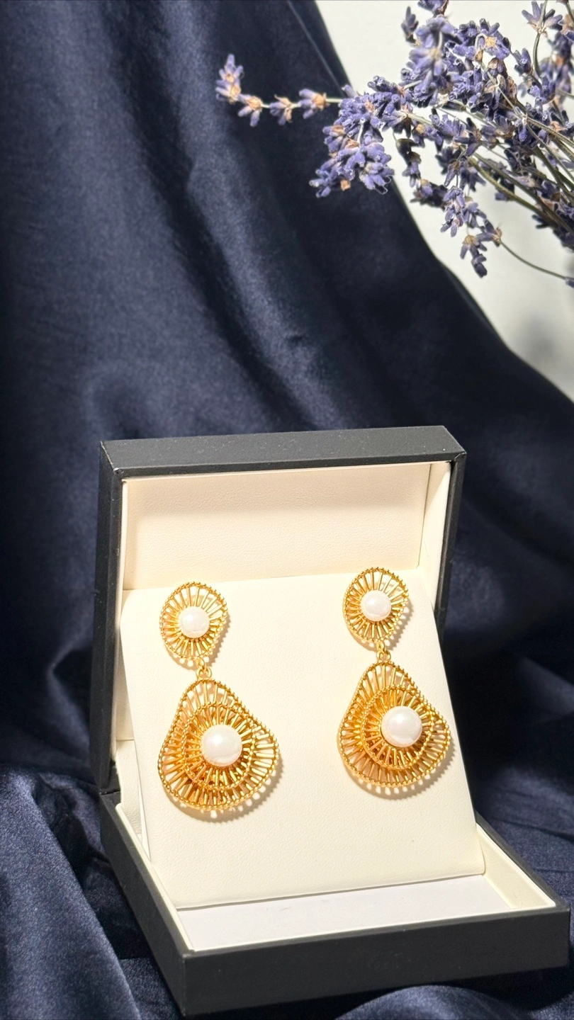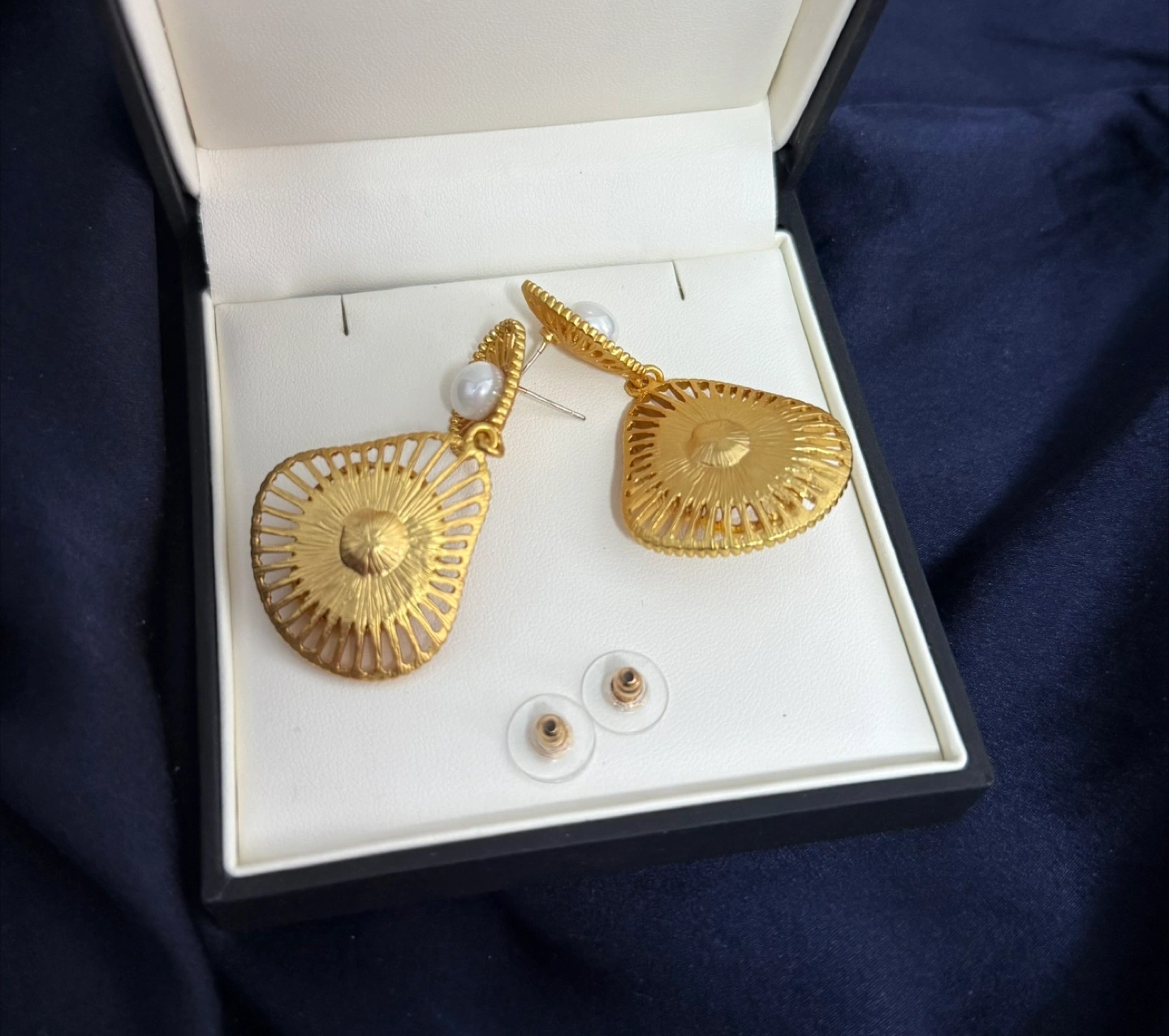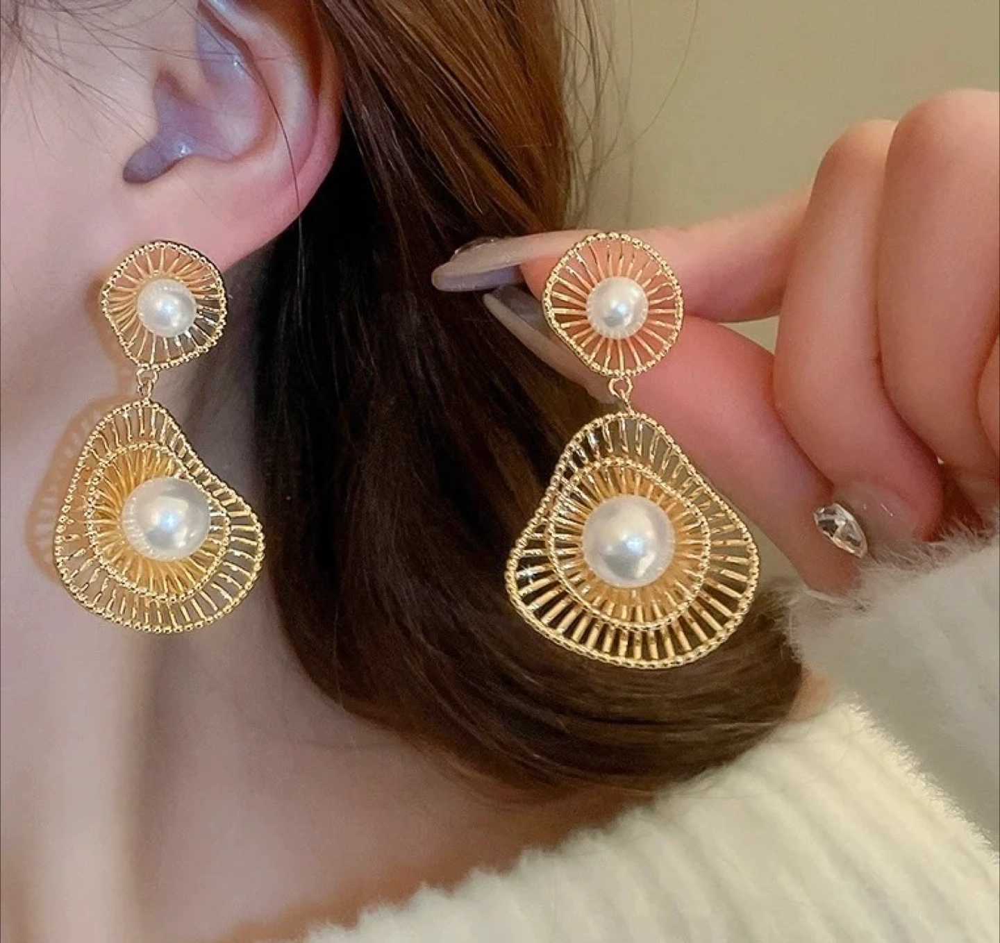 💕 Inspired by the warmth of golden sunshine filtering through a delicate lattice, these earrings combine airy open-weave artistry with the timeless beauty of pearls. Product Details: • Post: s925 • Size: Approx. 2.25 in (L) × 1.18 in (W) 5.7 cm (L) x 3 cm (W) • Weight: 18g / ea. • Finish: Gold-plated Copper • Packaging: Anti-oxidation Bag Included 📍Flexible meetup location 💌 DM for more photos/video or to see more styles 😉
