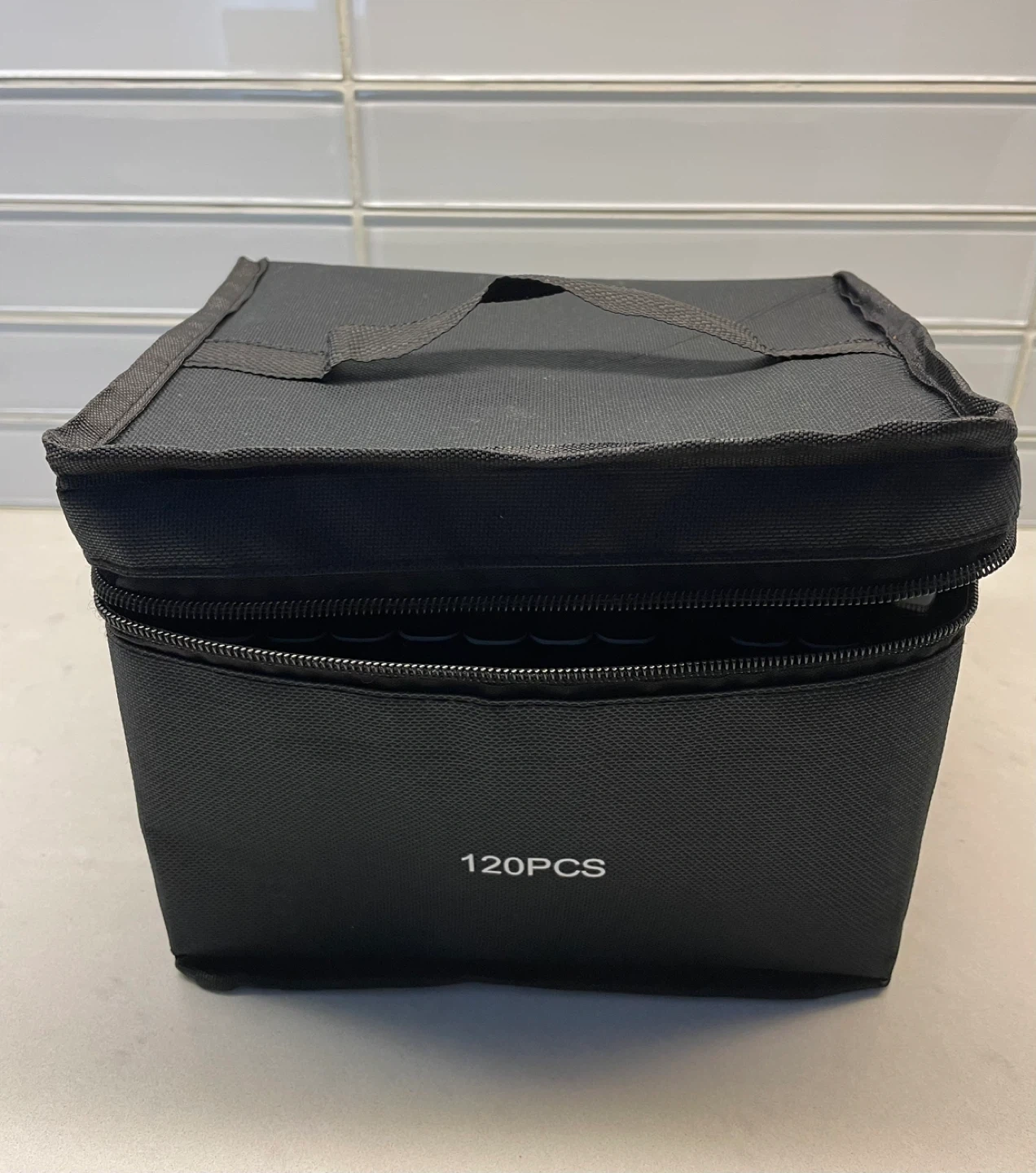 I'm selling a brand new set of 120 art markers! They come in a convenient carrying case, perfect for artists of all levels. The set includes a wide range of colours, so you'll have everything you need to create vibrant and detailed artwork