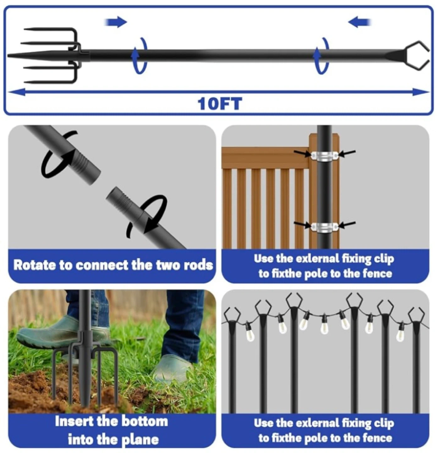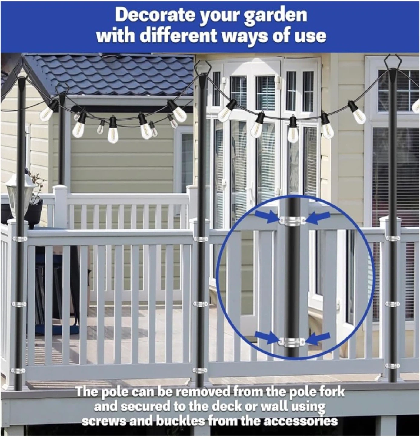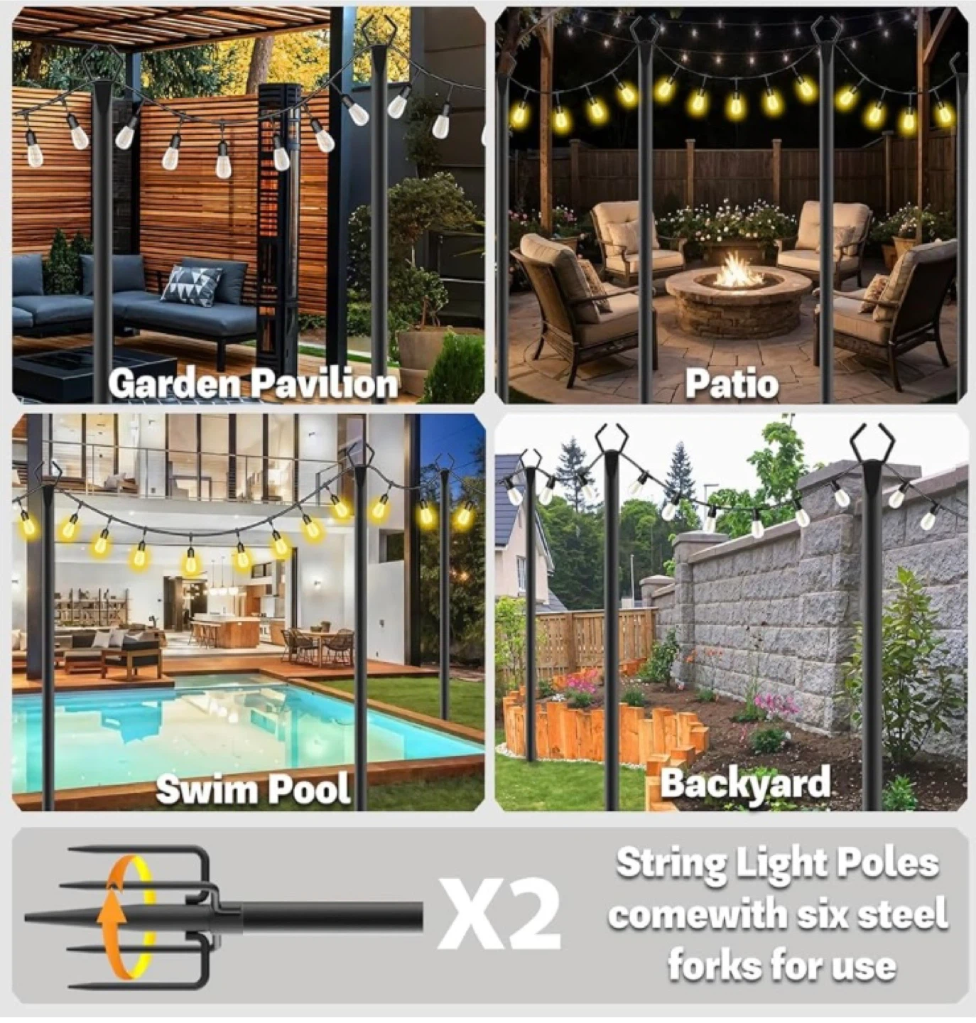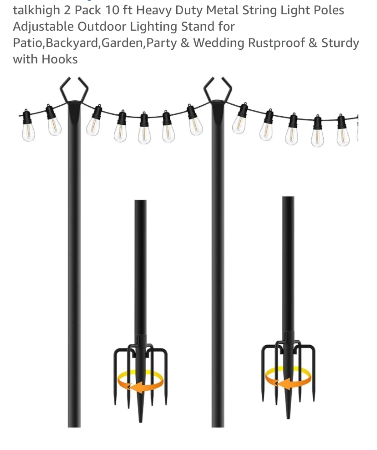 New 2 Pack 10 ft Heavy Duty Metal String Light Poles Ground stakes or brackets to mount to fence or deck post. $55 (retail $80 plus tax) Pickup in Whitby
