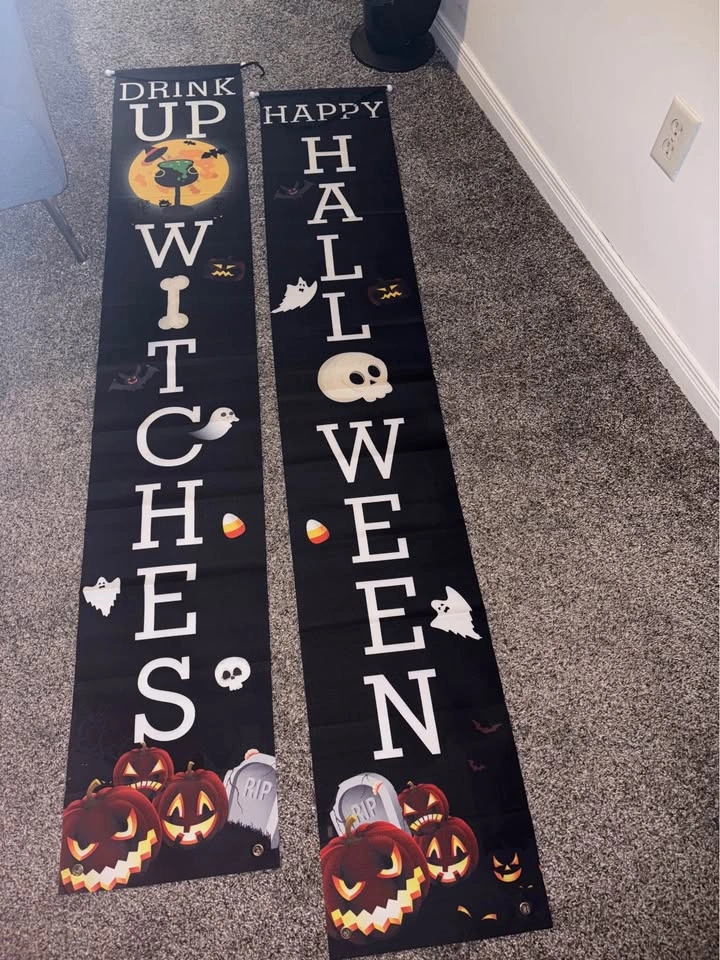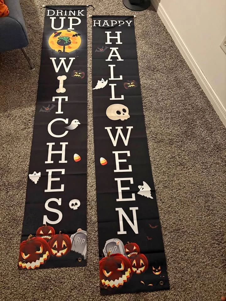 New 2pcs Halloween Porch Banner Outdoor Decorations