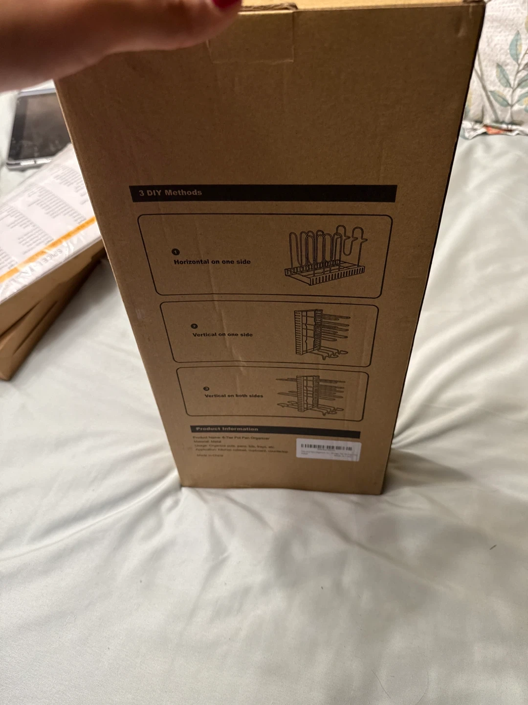 Selling a 6-Tier Pot Pan Organizer. It can be assembled in 3 different DIY methods: horizontal on one side, vertical on one side, or vertical on both sides