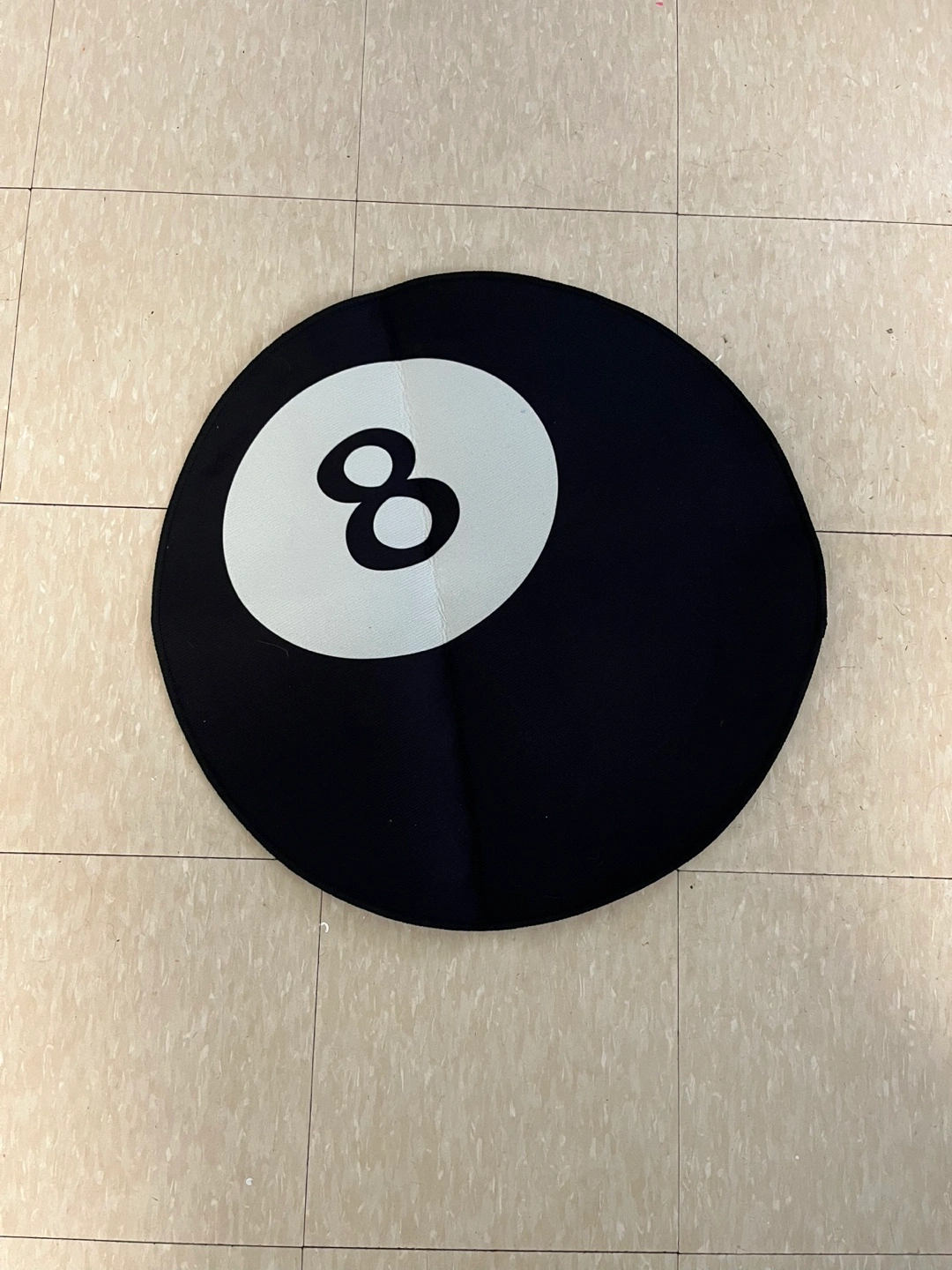 The game isn’t over till the 8 ball is sunk! This cute little black ball area mat is made up of some sort of like, rubbery material, it isn’t shaggy like a rug rug. That means it’s easy to clean!