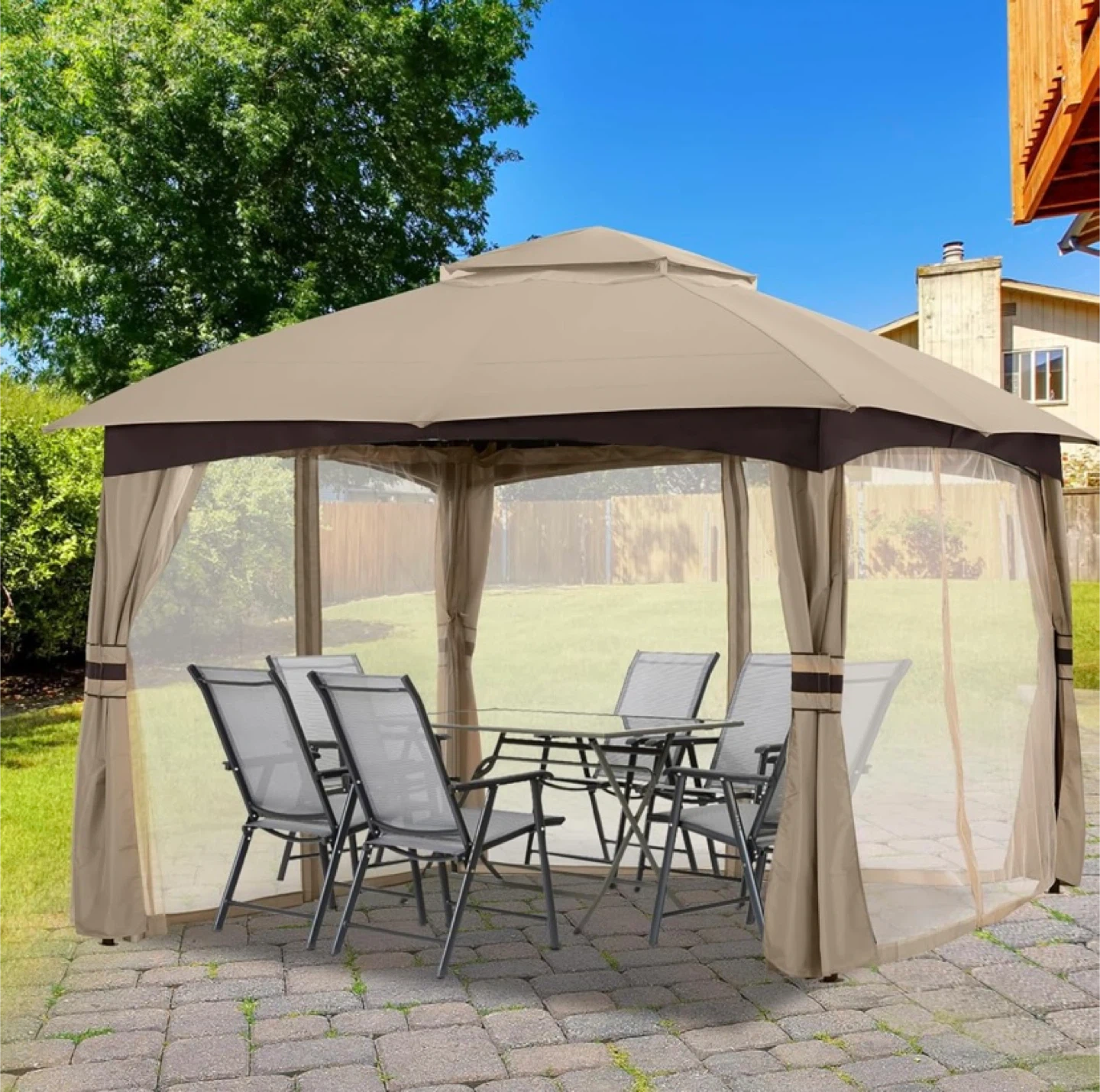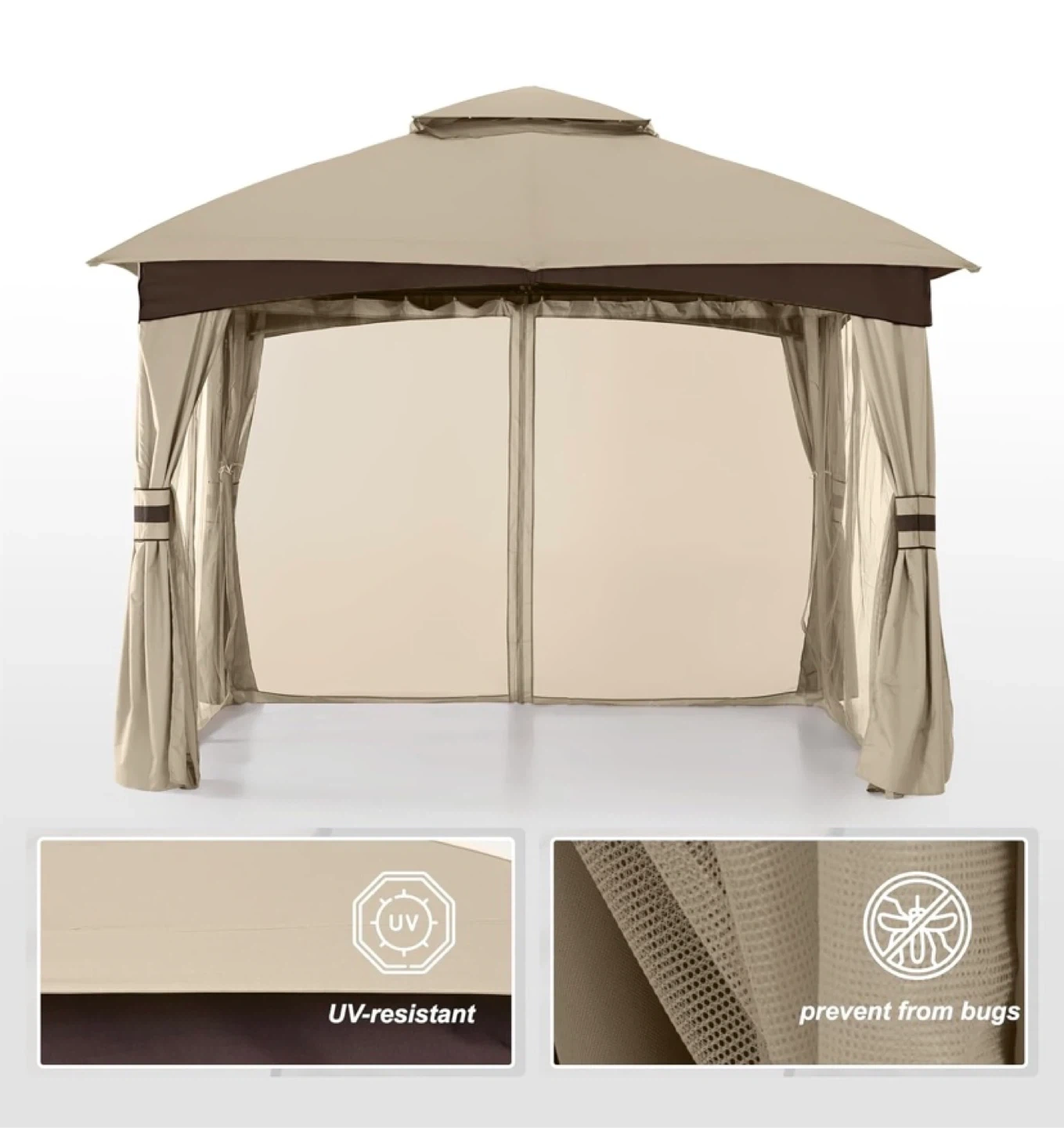 New 8’x8’ Gazebo Netting with hanging hooks Includes corner post covers Beige 4 Zipper openings $50 Pickup in Whitby