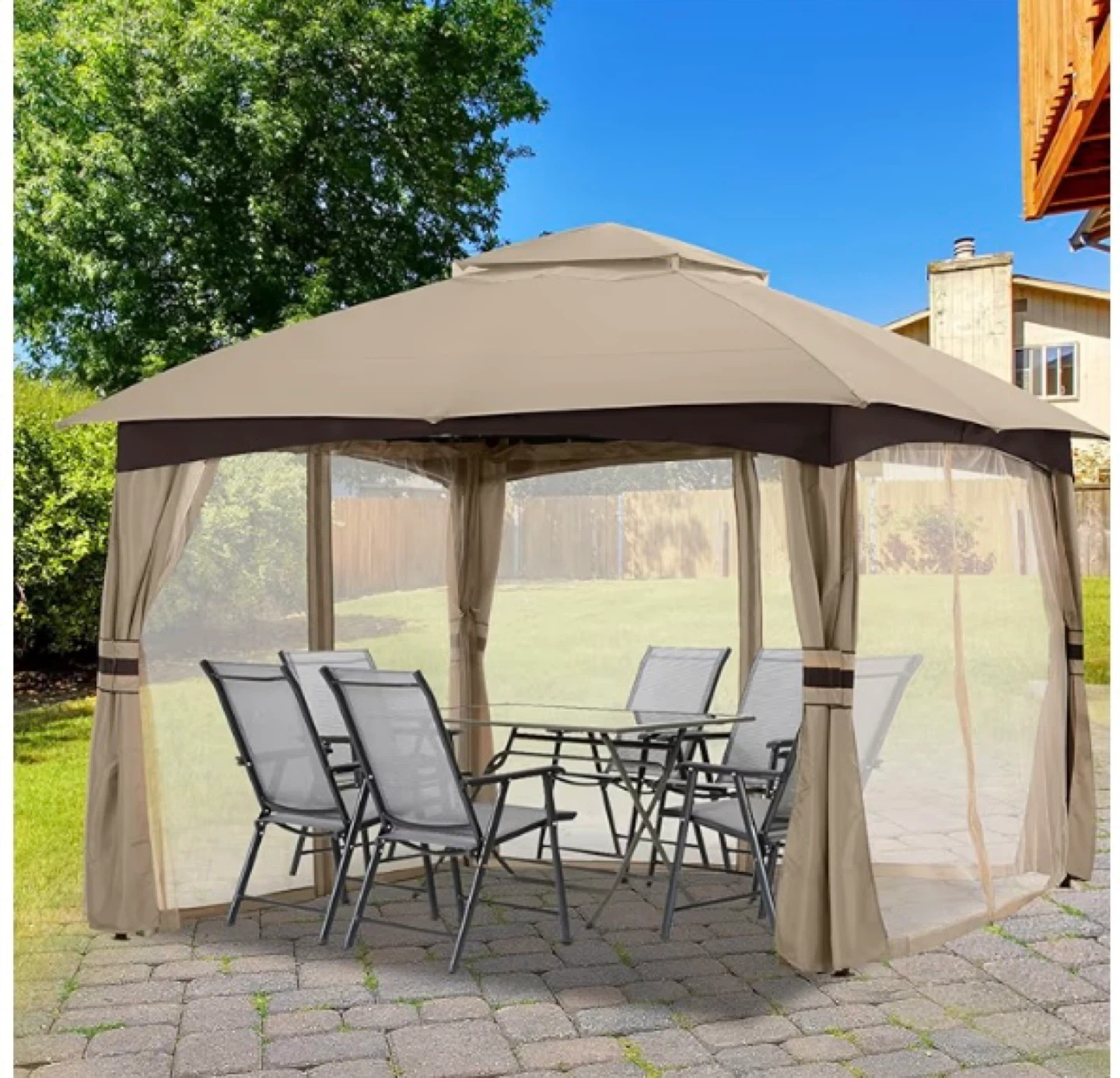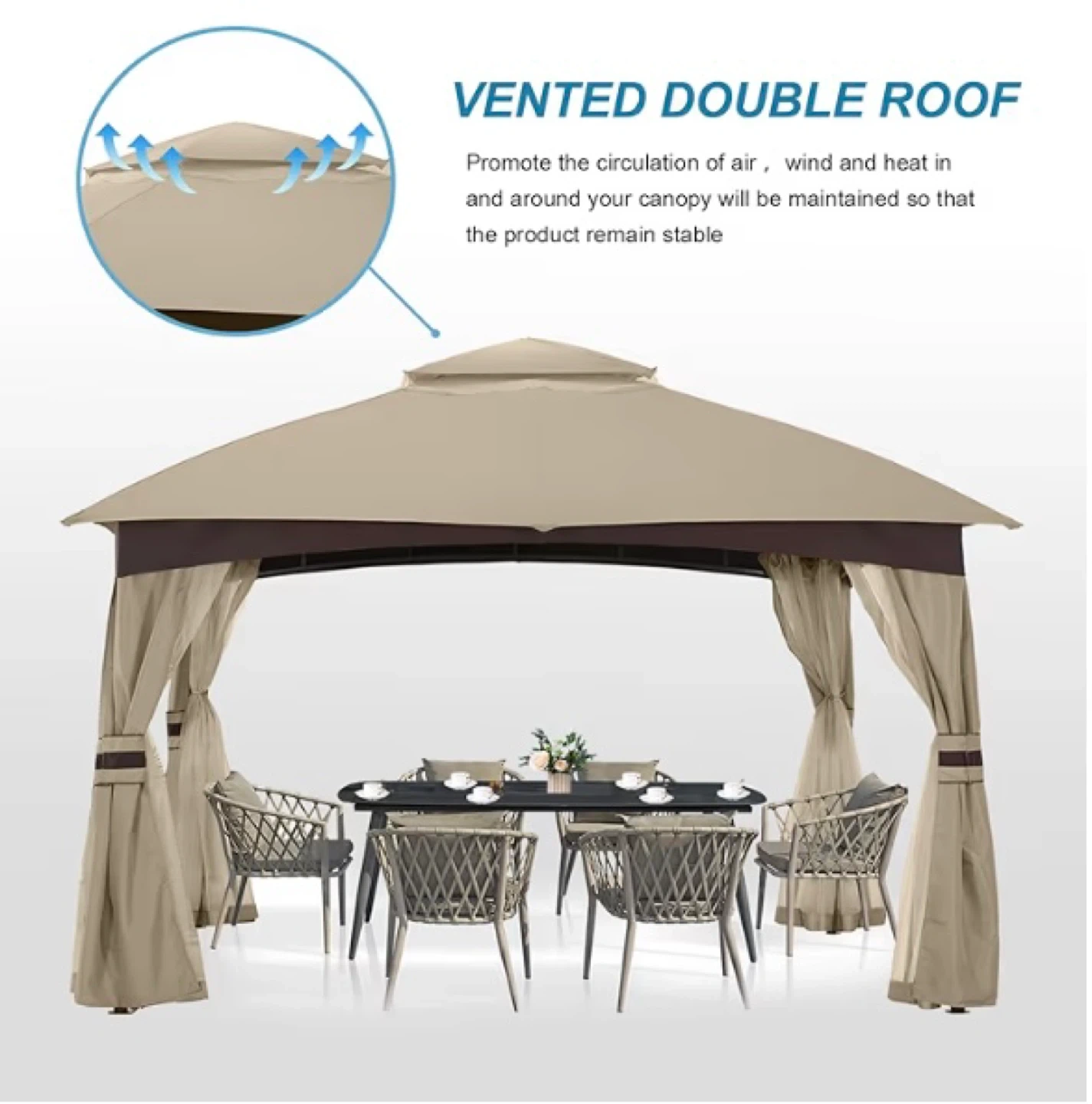 New 8x8 Replacement Gazebo Top With double roof vent Beige/brown Top 2 Piece Canopy Only $30 Pickup in Whitby