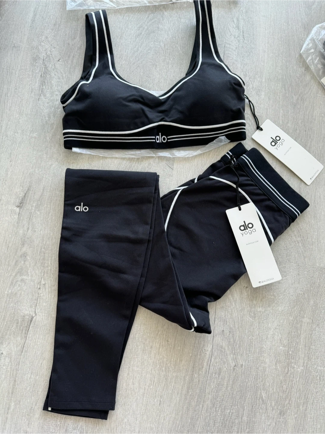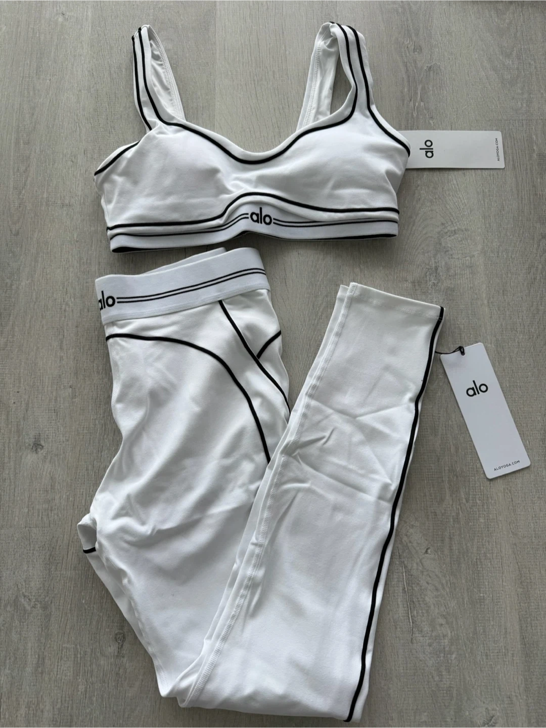 I'm selling a brand new Alo Yoga set! This includes the Airbrush High-Waist Heart Throb Legging and matching bra. The set is available in either black or white, and I have sizes from XS to Large. Perfect for yoga, Pilates, workouts, or just lounging around. Retails for 268++! ๐ Message me for pick-up address and shipping options. โ ๏ธ Prices are firm and in cash, all in final sale.