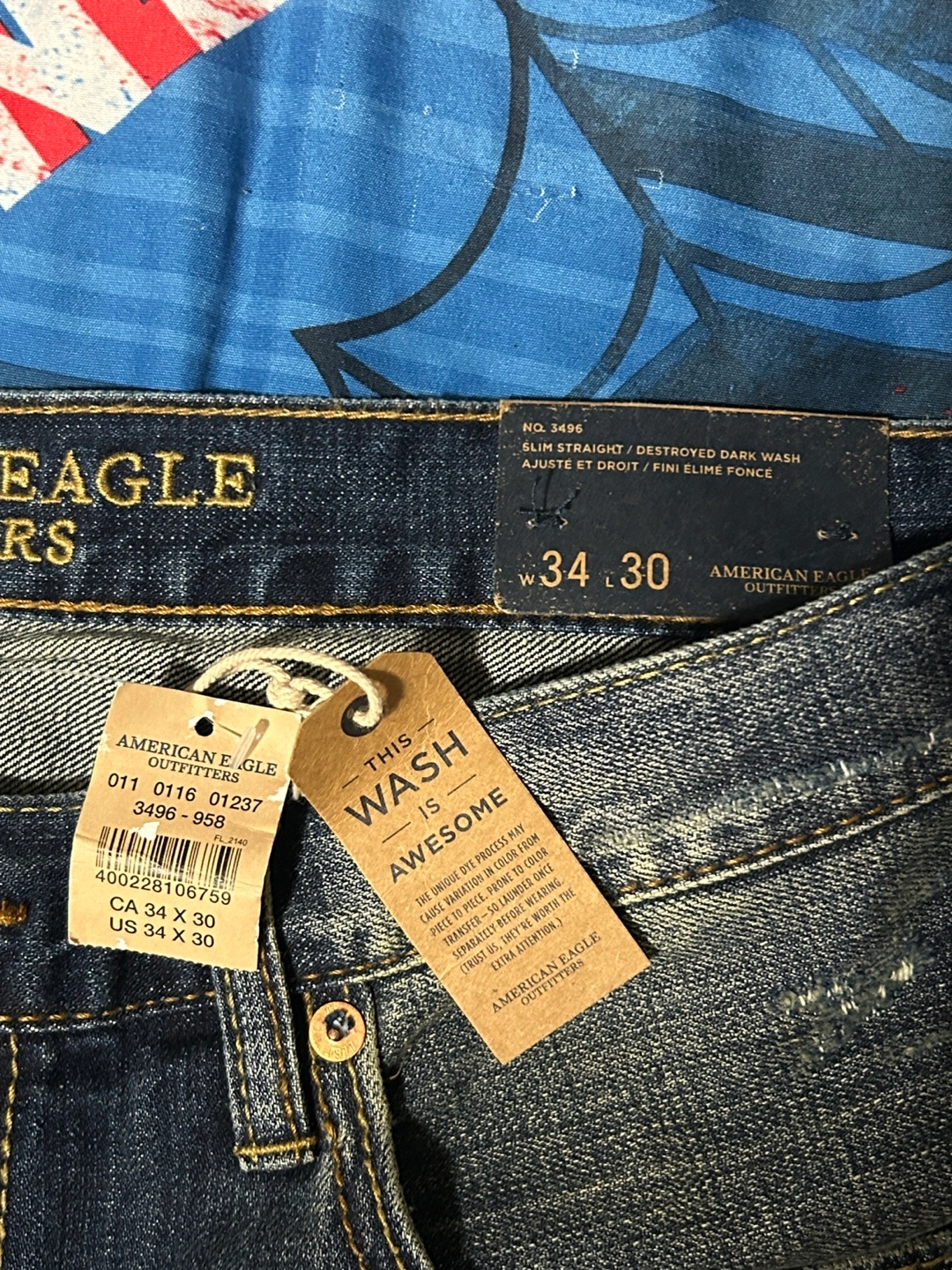 Upgrade your wardrobe with these iconic American Eagle jeans. Featuring a dark wash blue color and distressed detailing, these jeans offer both comfort and style. Made from premium cotton. BRAND NEW WITH TAGS. Retail for $100+ Men’s Size 34x30 Cash is preferred but e-transfer is also accepted. Pick up is preferred. However, During the week I can meet at lougheed station after 5pm. Weekends I can meet anywhere transit accessible. In Burnaby or new west is preferred.