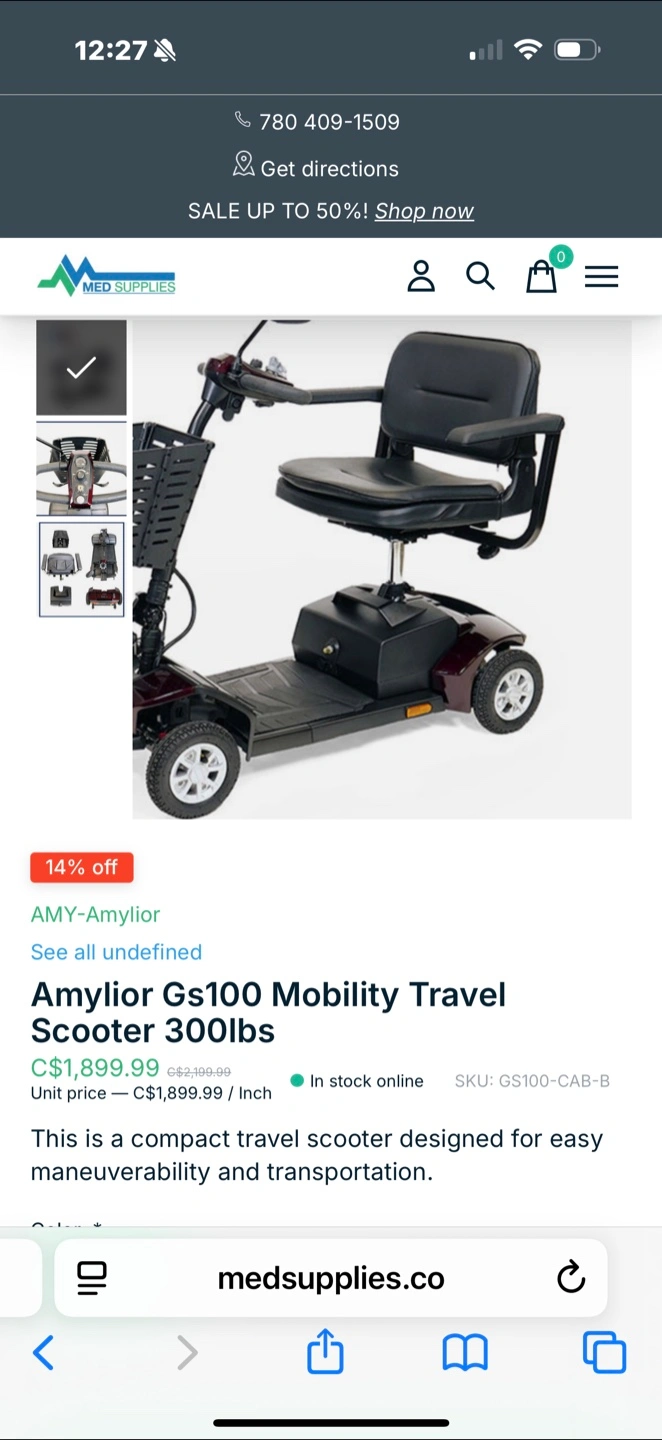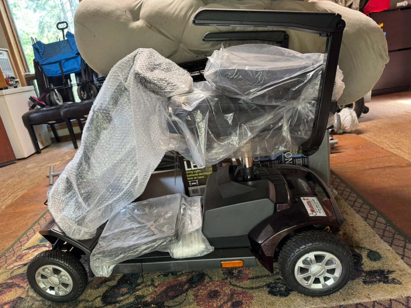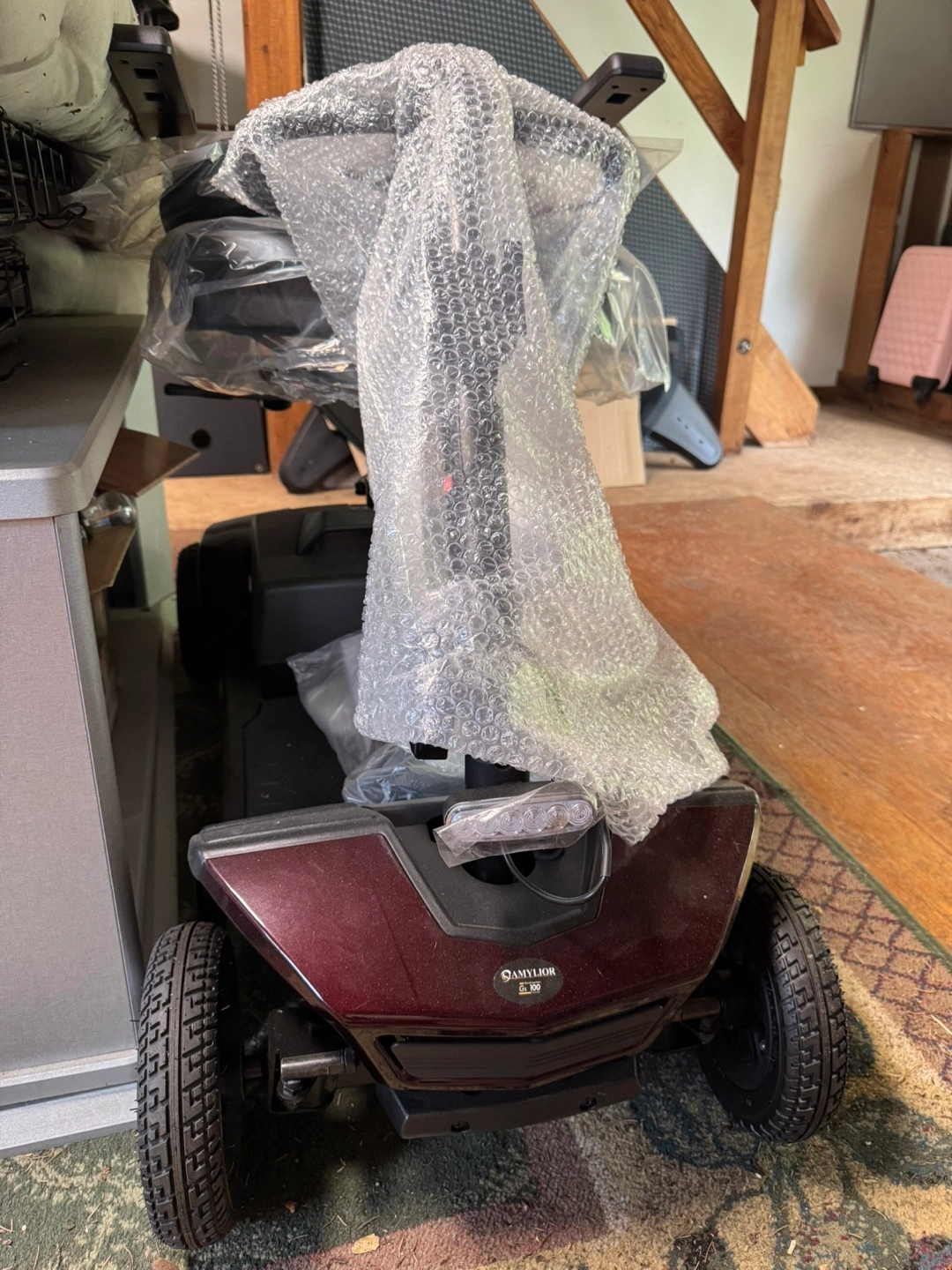 I'm selling a brand new Amylior Gs100 Mobility Travel Scooter in Cabernet colour! It comes in its original box. Perfect for getting around with ease and comfort Description from website: The Amylior compact travel scooter offers effortless maneuverability and transportability. Explore its key features: Sealed Lead-Acid Batteries (22Ah): The scooter comes with two sealed lead-acid batteries with a capacity of 22Ah each. These batteries provide the power needed to operate the scooter and allow for local trips or travel. Quick Release Collapse: The scooter features a quick-release mechanism that allows for easy collapsing and disassembly. This is particularly useful when you need to transport the scooter in a car or store it in a compact space. LED Front Light: The scooter is equipped with an LED front light, enhancing visibility during low-light conditions or nighttime use, ensuring safer travel. Foldable Removable Basket: A foldable and removable basket is included, providing convenient storage space for personal items or shopping bags while using the scooter. Control Panel with Charge Indicator: The control panel on the scooter includes a charge indicator, allowing you to monitor the battery level and plan your trips accordingly. Adjustable Tiller: The tiller, which is the steering column of the scooter, is adjustable. This allows you to customize the steering position for your comfort and preference. Tires with Inner Tube: The scooter features tires with inner tubes, which can provide a smoother ride and better shock absorption, enhancing overall comfort. Charger Storage Compartment: There's a designated storage compartment for the charger. This helps keep the charging equipment organized and accessible. Rear-View Mirror: The scooter comes with a rear-view mirror to assist you in keeping an eye on traffic and your surroundings while operating the scooter. Four-Wheel Suspension: The inclusion of four-wheel suspension enhances the scooter's ability to handle uneven terrain and bumps, providing a smoother ride experience. Overall, the Gs100 Travel Scooter by Amylior is designed to be a user-friendly and versatile mobility solution, especially for those who need a compact and easily transportable scooter for local trips or travel. It offers a range of features that contribute to its ease of use, comfort, and safety.