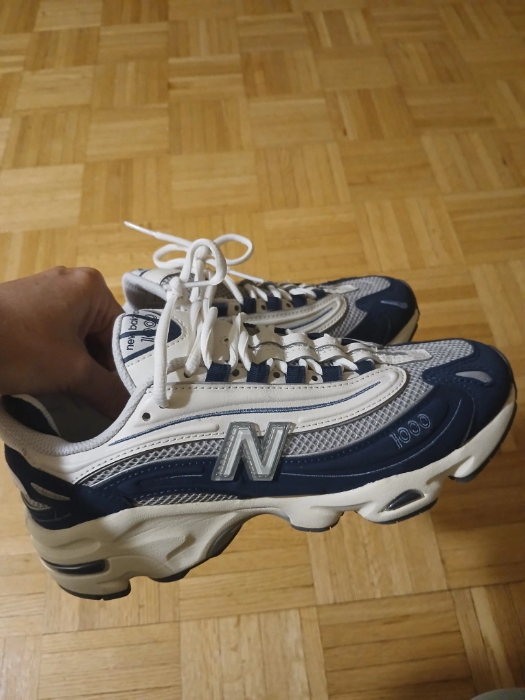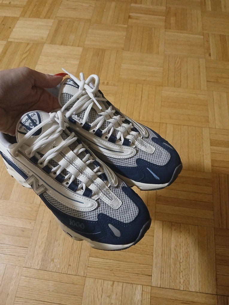 Selling a pair of New Balance 1000 sneakers in a stylish blue and white colourway. Will come with original box.