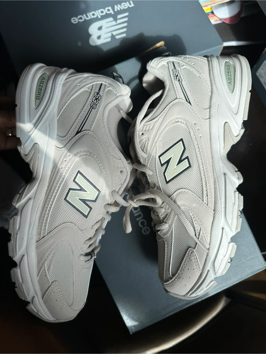 Selling a pair of New Balance 530 sneakers in beige. They are in excellent condition and come with the original box!