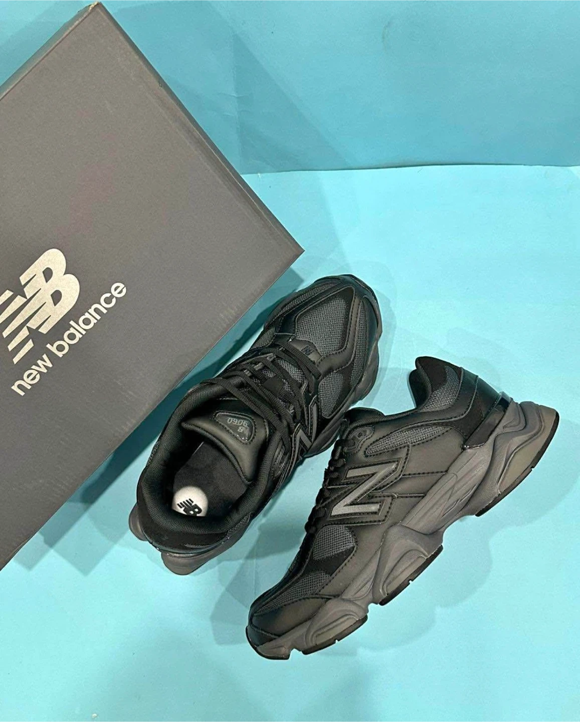 Selling a pair of New Balance 9060 sneakers in black. They come with the original box. Great condition!