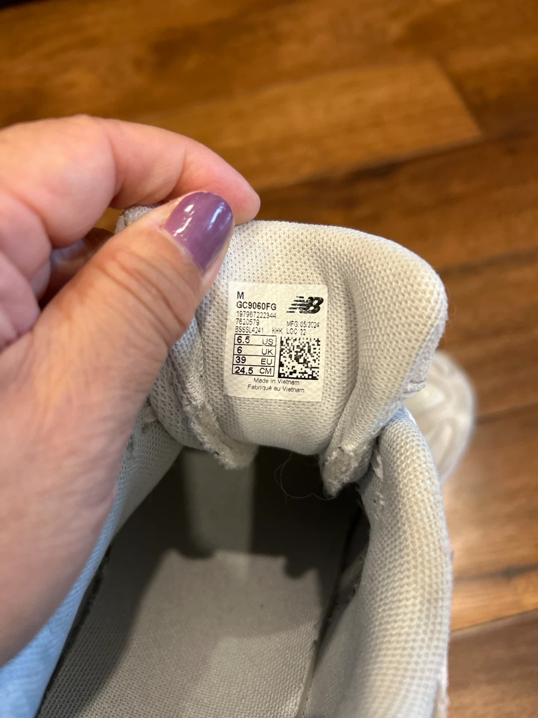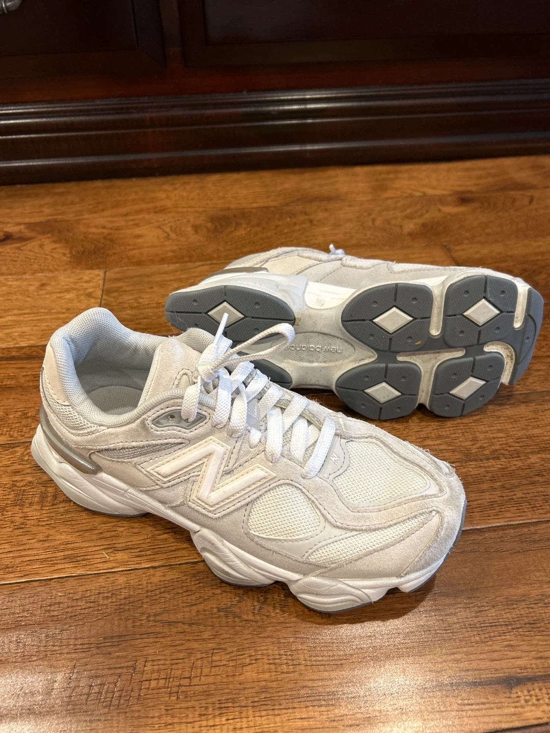 Selling a pair of New Balance 9060 sneakers in a lovely cream colour! These are women's size 6.5 US, 6 UK, and 37 EUR, or 23.5 cm. The model number is GC9060FG. They are in great condition and ready for a new home! Worn out a few times.