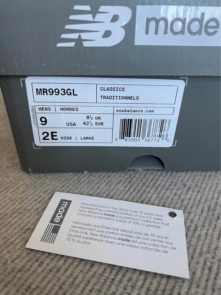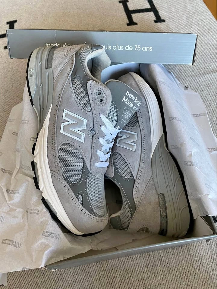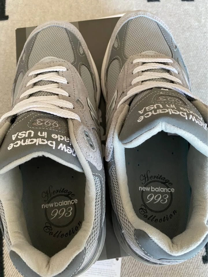 I'm selling a pair of New Balance 993 in grey, wide version, men's size 9, made in the USA. These shoes feature a premium suede and mesh upper for breathability and a classic look. These are in excellent condition as you can see from the photos. 100% authentic with box and receipt. Wide version for better comfortness.