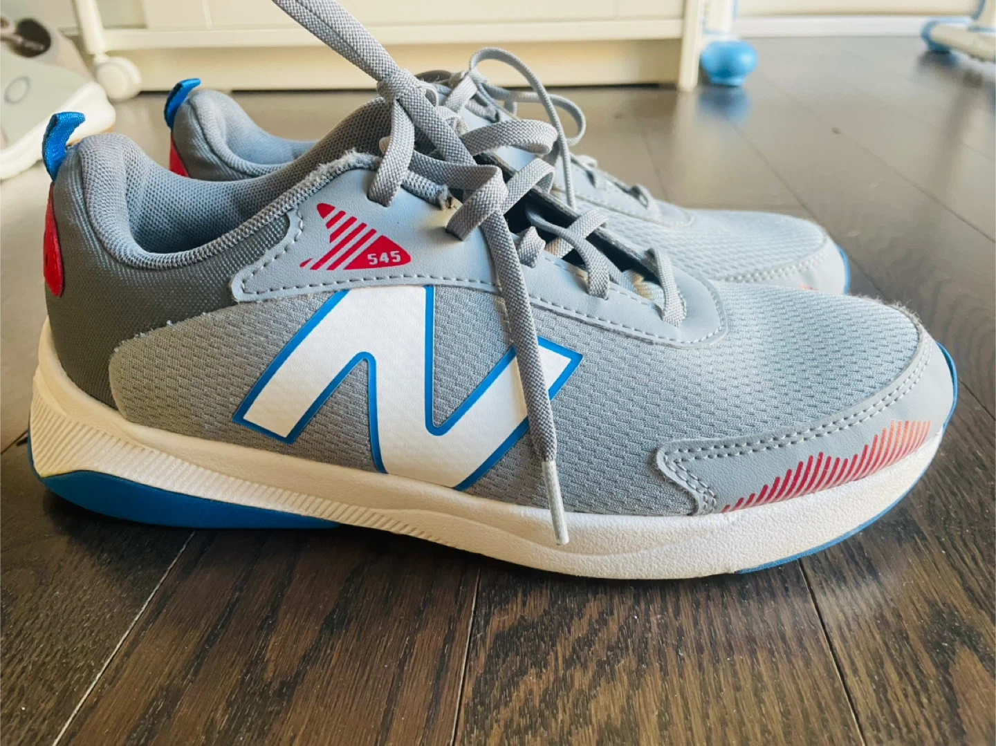Selling a pair of New Balance 545 sneakers in a stylish grey and blue colourway! These are in US size 6 in big boy They feature a Dynasoft sole for extra comfort. Great for everyday wear!