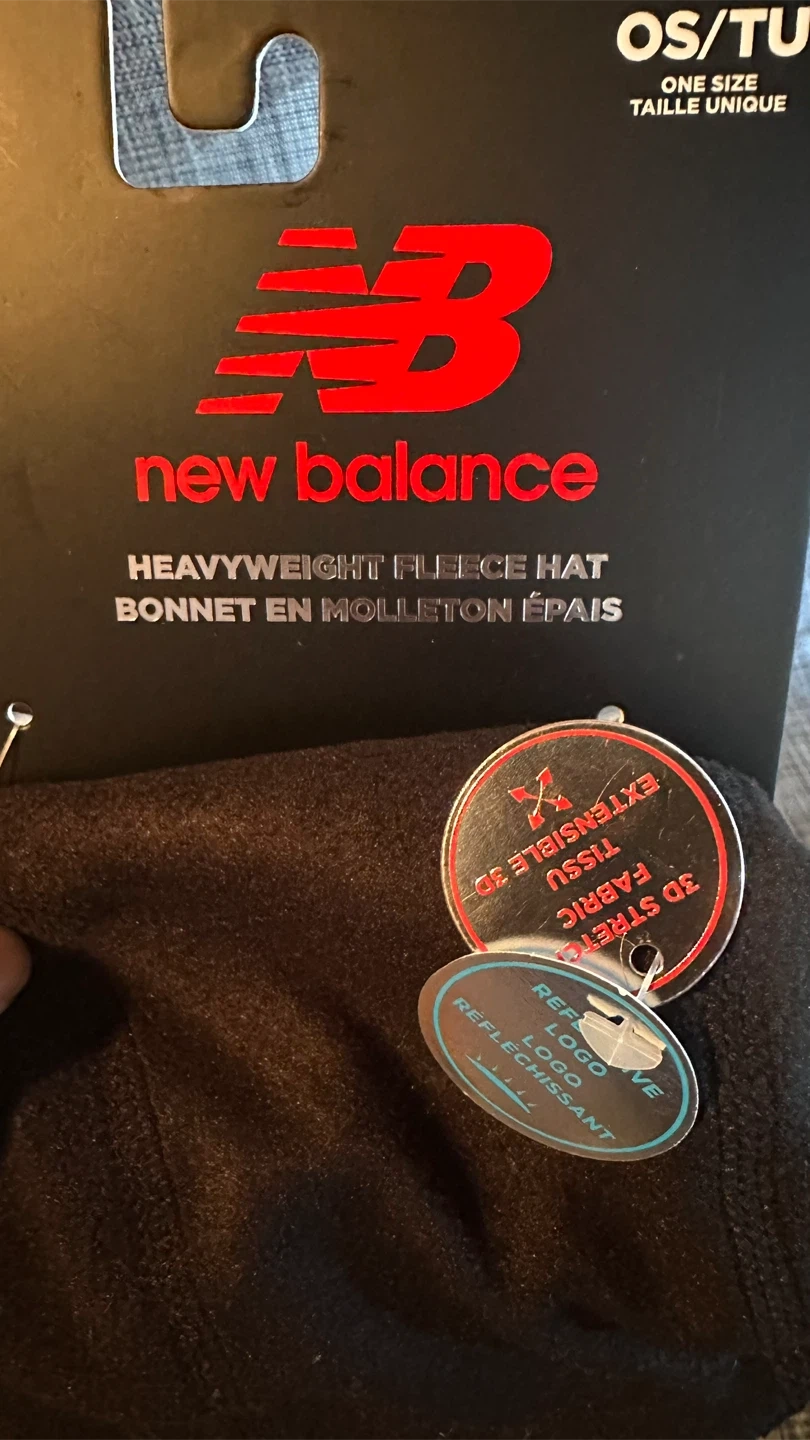 Keep warm this winter with a New Balance heavyweight fleece hat! It's black, one size fits all, and features a reflective logo for added visibility. This hat has a 3D stretch fabric for optimal comfort and a raised silicone logo on the brim