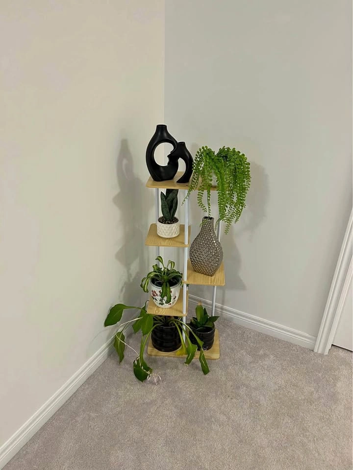 I am offering a brand new Bamyworld five-tier corner plant stand, perfect for displaying your favourite greenery. This stylish stand is designed to fit snugly into any corner, maximizing space while adding a touch of elegance to your home decor. Key features include: * Five-tier design * Corner-friendly shape * Sturdy construction * Easy assembly Looking at similar listings, a comparable plant stand is typically priced around $50 - $80. Given that this item is new, I've priced it competitively. If the ad is up, it's available!