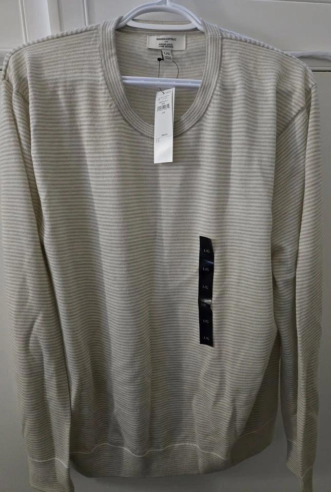 Banana Republic Men's Merino Wool Sweater 100% Wool in Neutral Stripe Sz L (NEW)