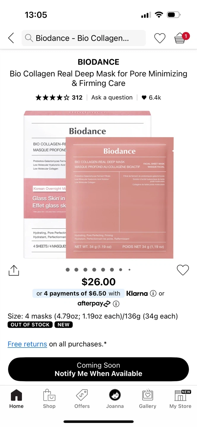 New Biodance Bio Collagen Real Deep Mask (4 sheets)