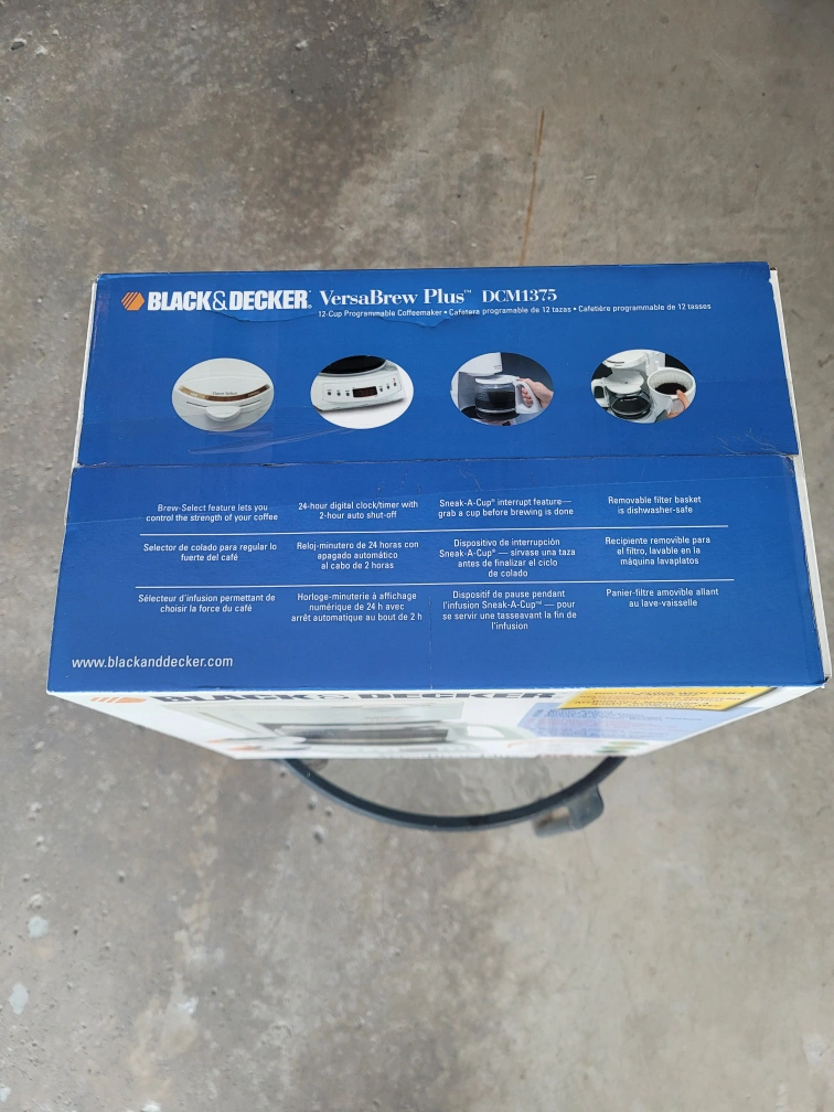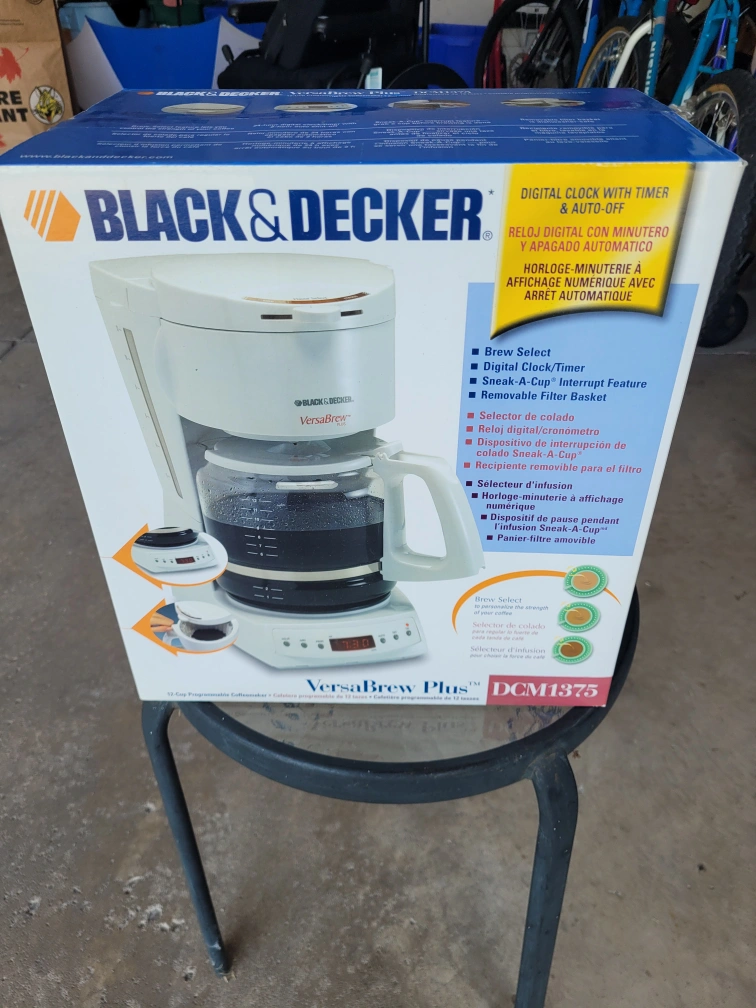 Selling a brand new Black & Decker VersaBrew Plus DCM1375 coffee maker! It's still in the box and has never been used. This 12-cup programmable coffeemaker features: - Brew Select to control the strength of your coffee - A 24-hour digital clock/timer with a 2-hour auto shut-off - Sneak-A-Cup interrupt feature - Removable filter basket that's dishwasher-safe