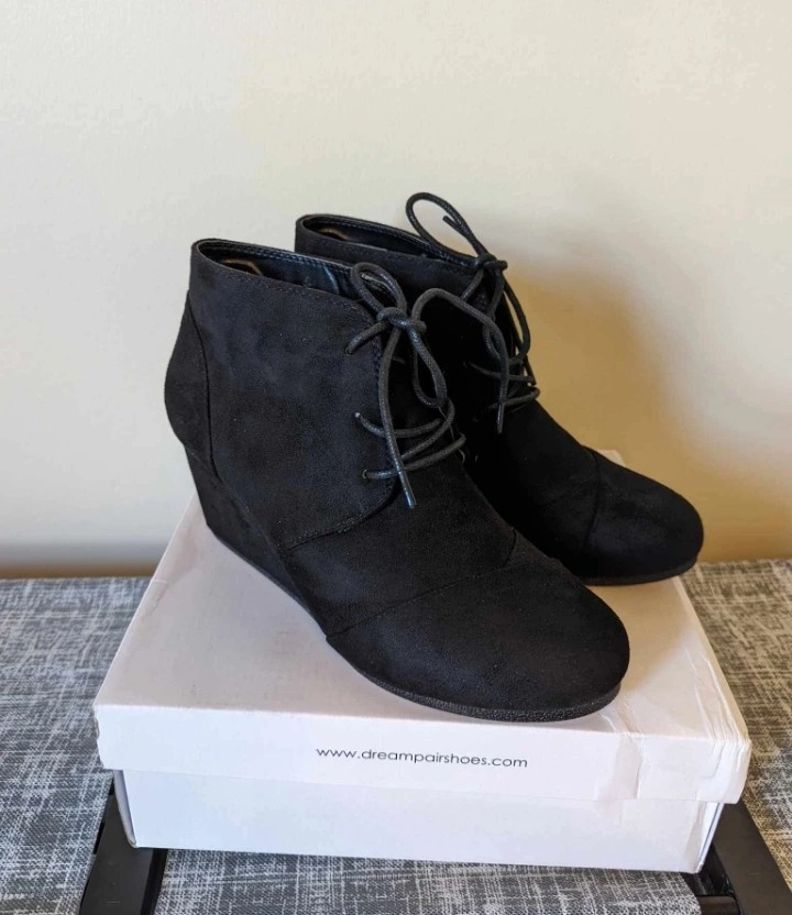 New in box pair of Dream Pairs black wedge ankle boots in size 9 1/2. $25 Pick up only near Weston Rd and Black Creek