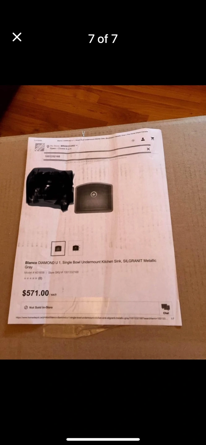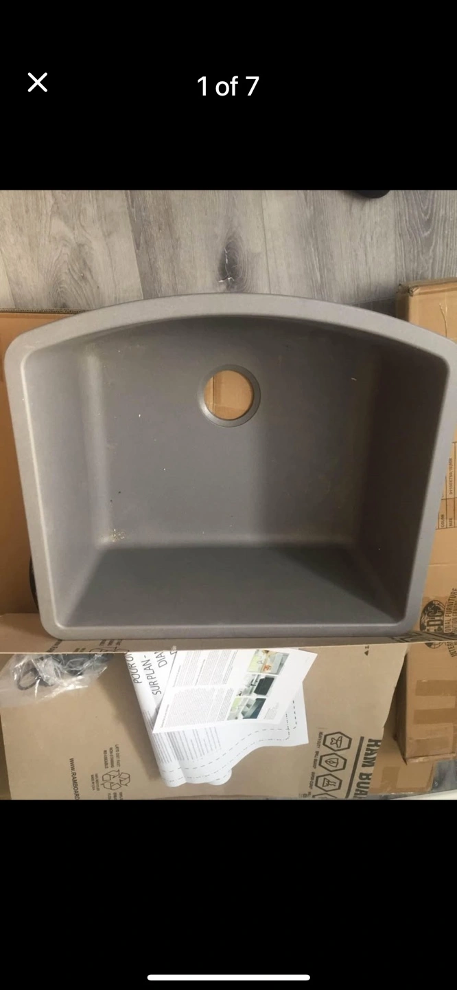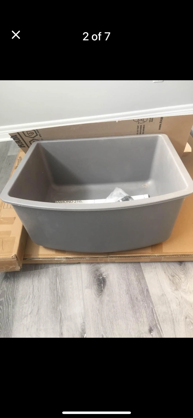 Brand new, never installed Blanco Diamond 210 farmhouse kitchen sink. Grey colour. Includes all parts and instructions. Perfect for kitchen renovations.