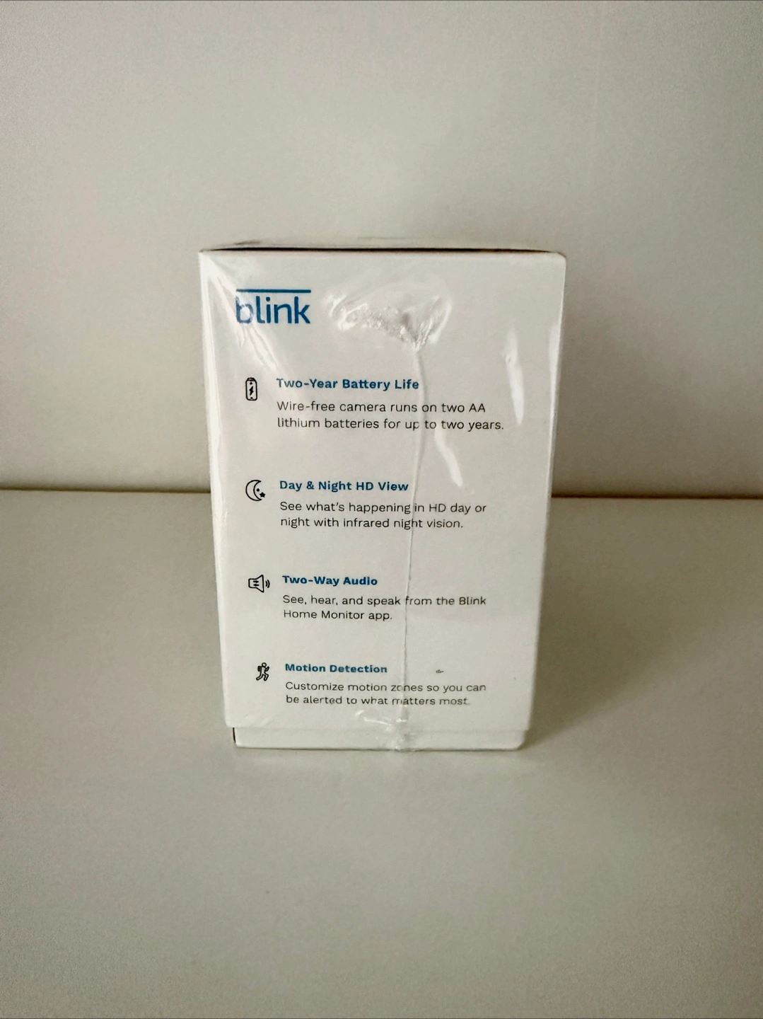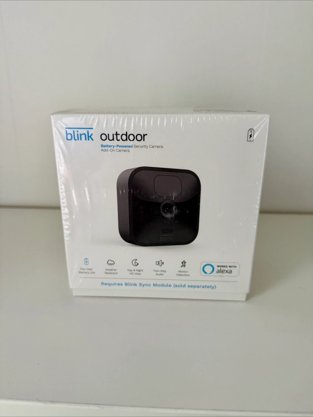 Selling a brand new Blink Outdoor battery-powered security camera! It's still in its original packaging. Key features include: - Two-year battery life - Day & Night HD view - Two-way audio - Motion detection