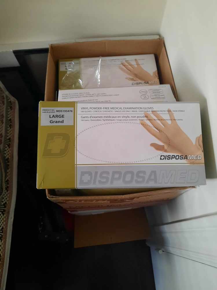 Boxes of medical examination gloves in a box. The box looks new. Use these to keep your hands clean when doing certain crafts or house projects. available 20 boxes