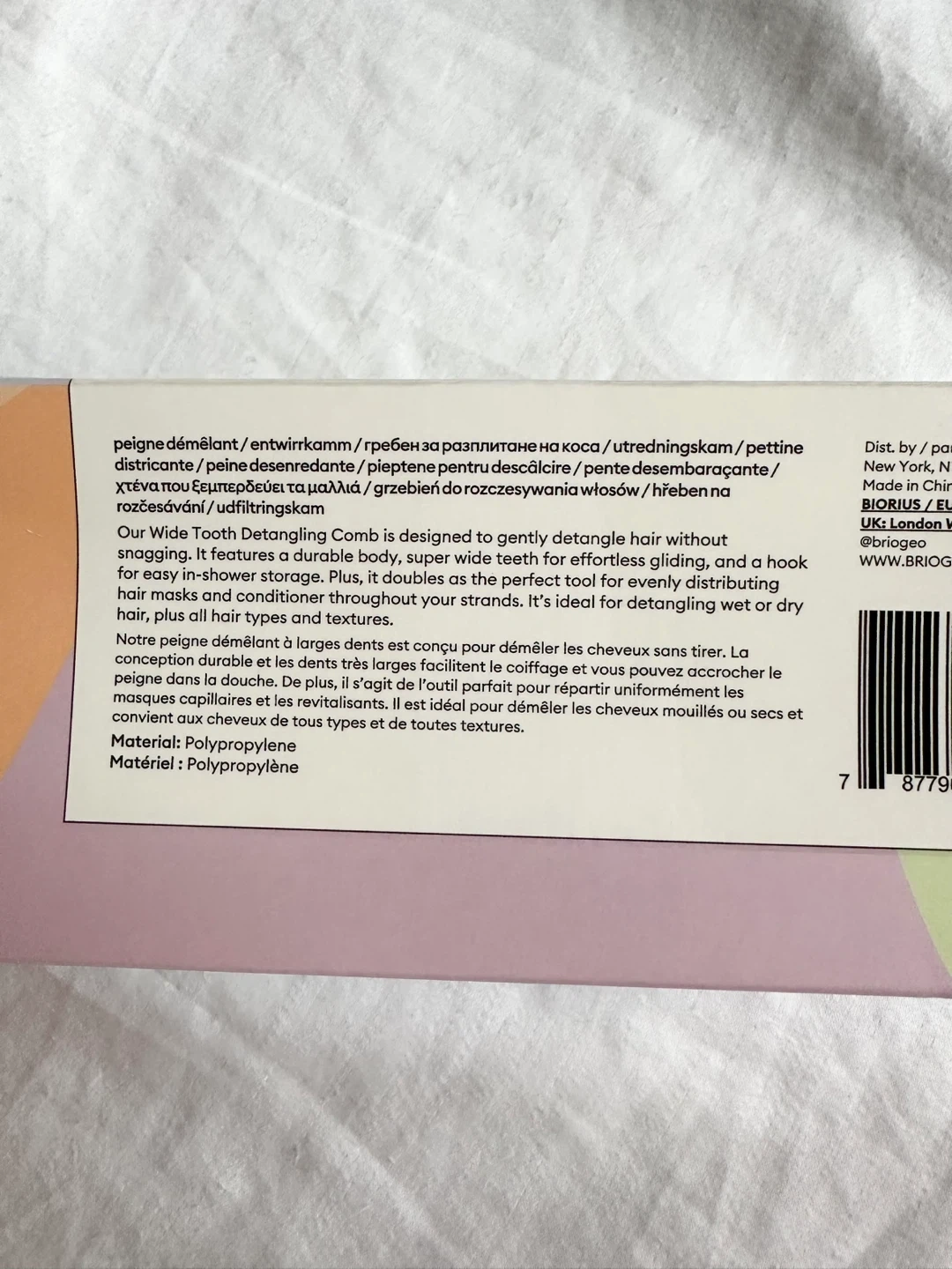 New in box Briogeo Wide Tooth Detangling Comb. It's designed to gently detangle hair without snagging, featuring wide teeth for effortless gliding. It also has a hook for easy in-shower storage. The comb is perfect for evenly distributing hair masks and conditioner throughout your strands. It's ideal for detangling wet or dry hair, plus all hair types and textures. Pickup in Richmond, cash only.