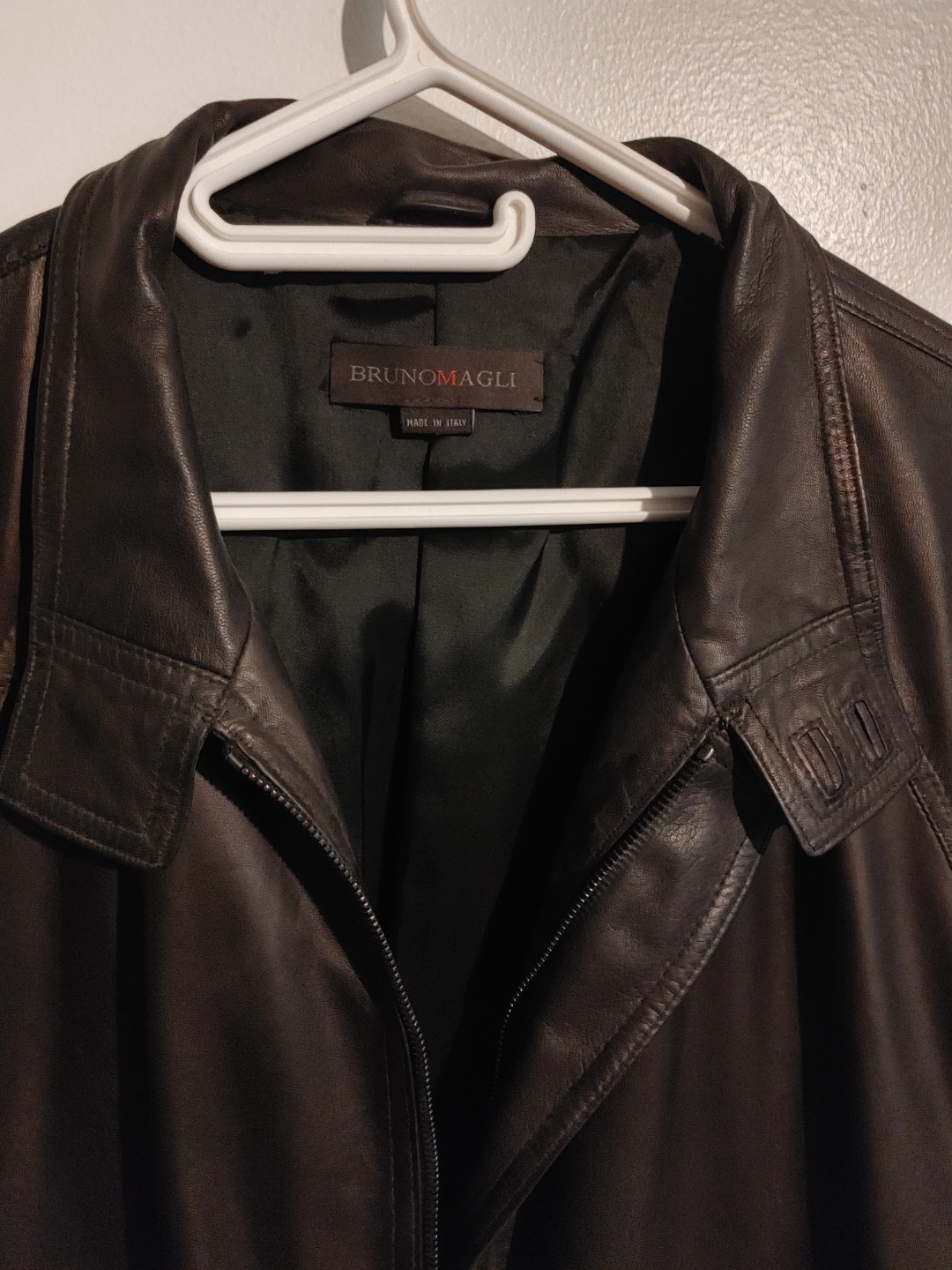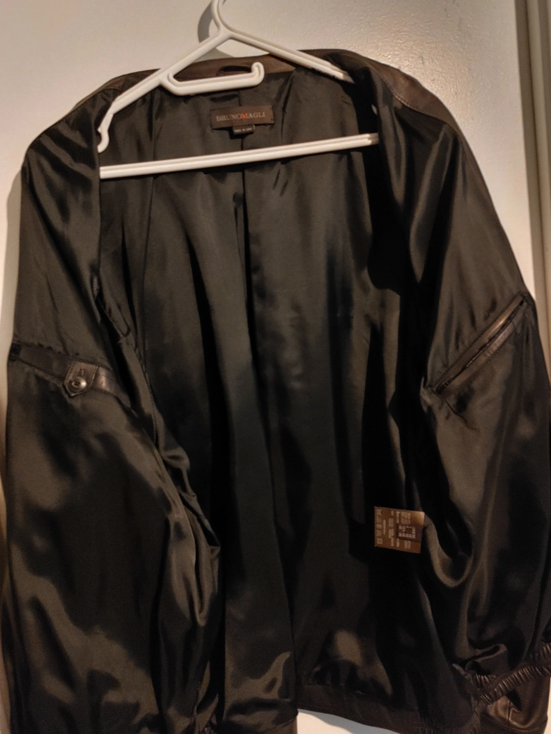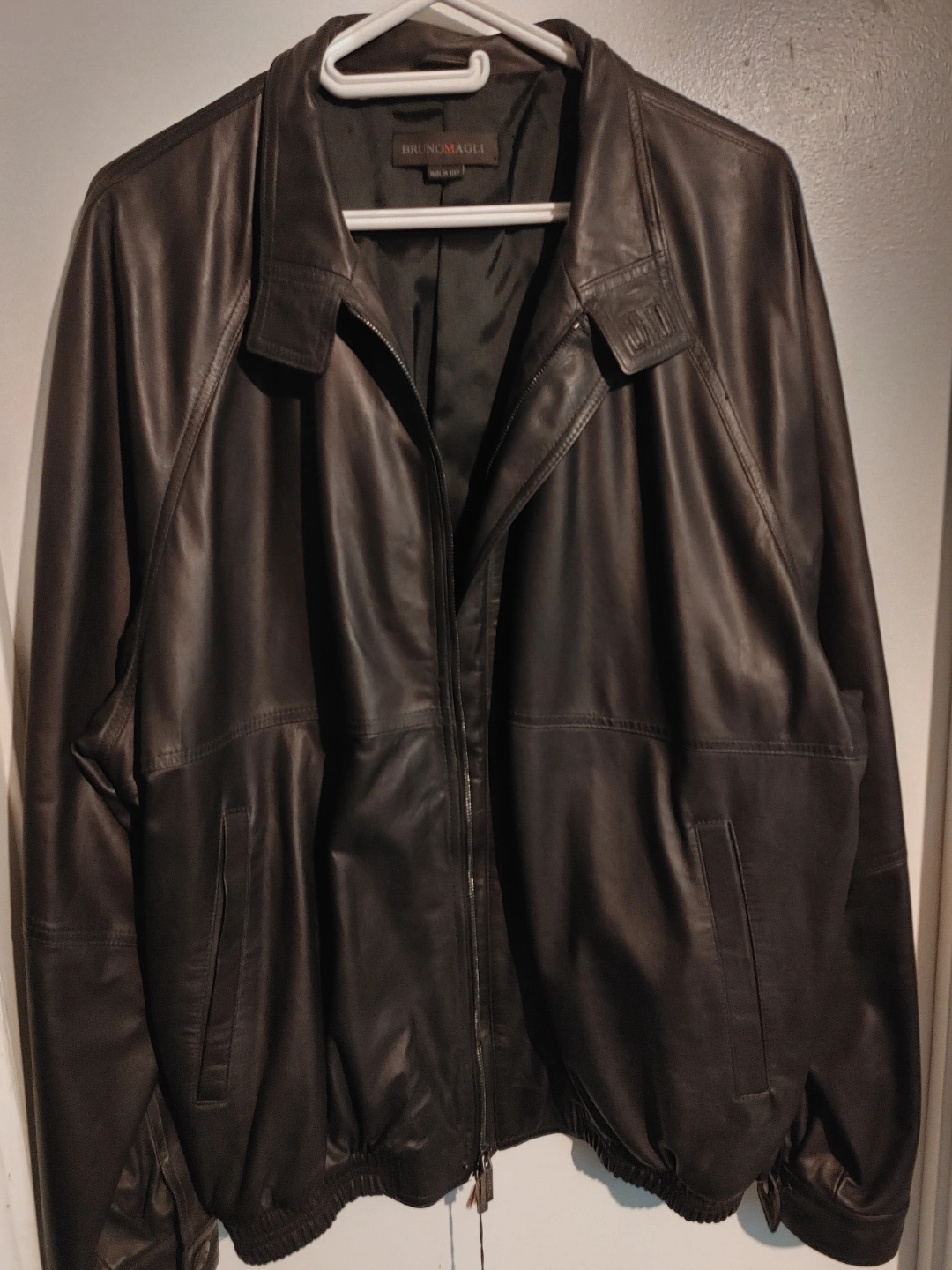 💚BRUNO MAGLI GENUINE LEATHER JACKET. 💚BRAND NEW WITH ALL TAGS 💚MENS SIZE 48R (Regular) 💚TAG DESCRIPTION IS DARK BROWN, BUT I CONSIDER IT MORE OF A BLACK. 💚MADE IN ITALY OF THE FINEST MATERIALS AND CRAFTSMANSHIP. 💚I AM LOCATED IN THE YONGE AND STEELES AREA FOR PICKUP