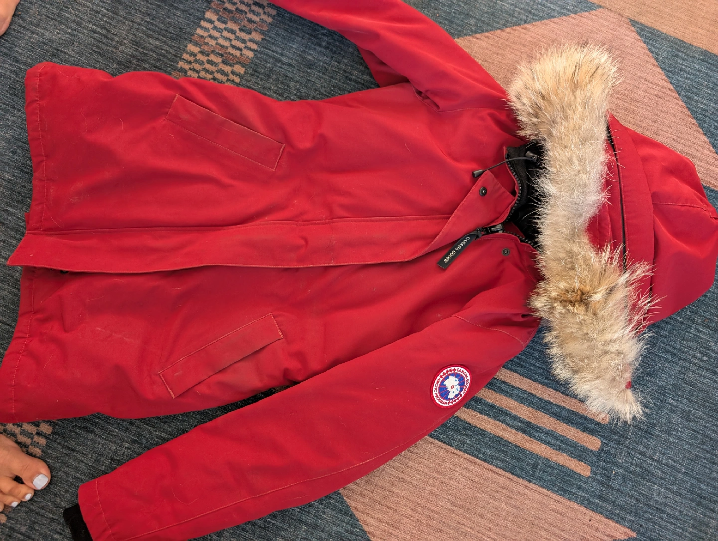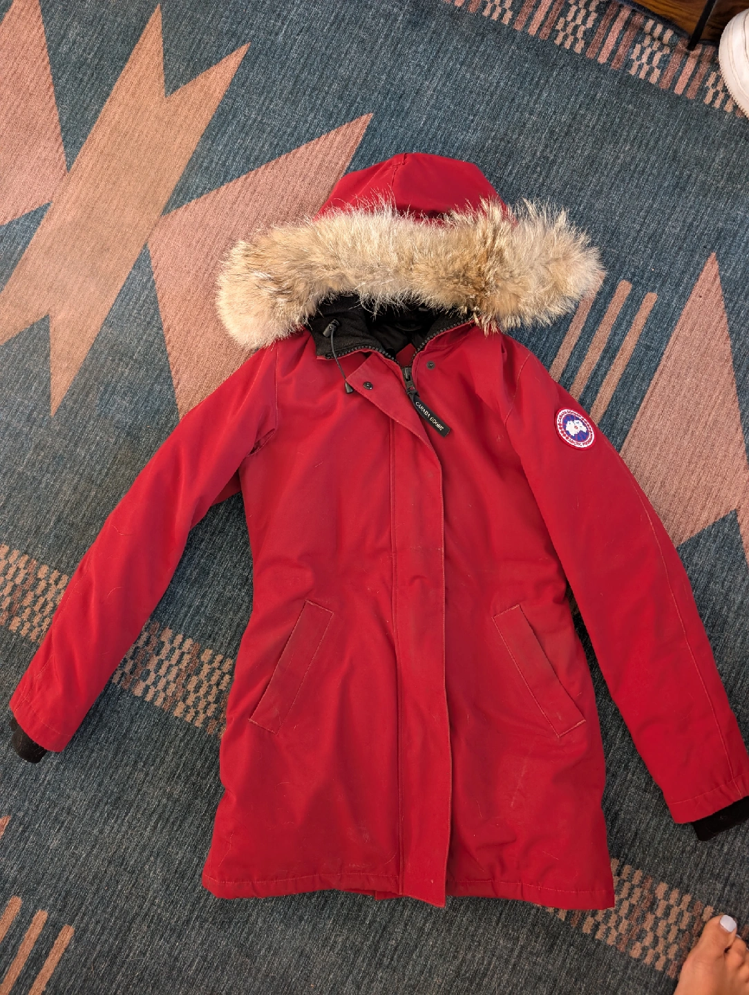 Selling a used authentic Canada Goose parka in size small. In great condition, could use a dry clean. only used for one season. the bottom zipper toggle broke.