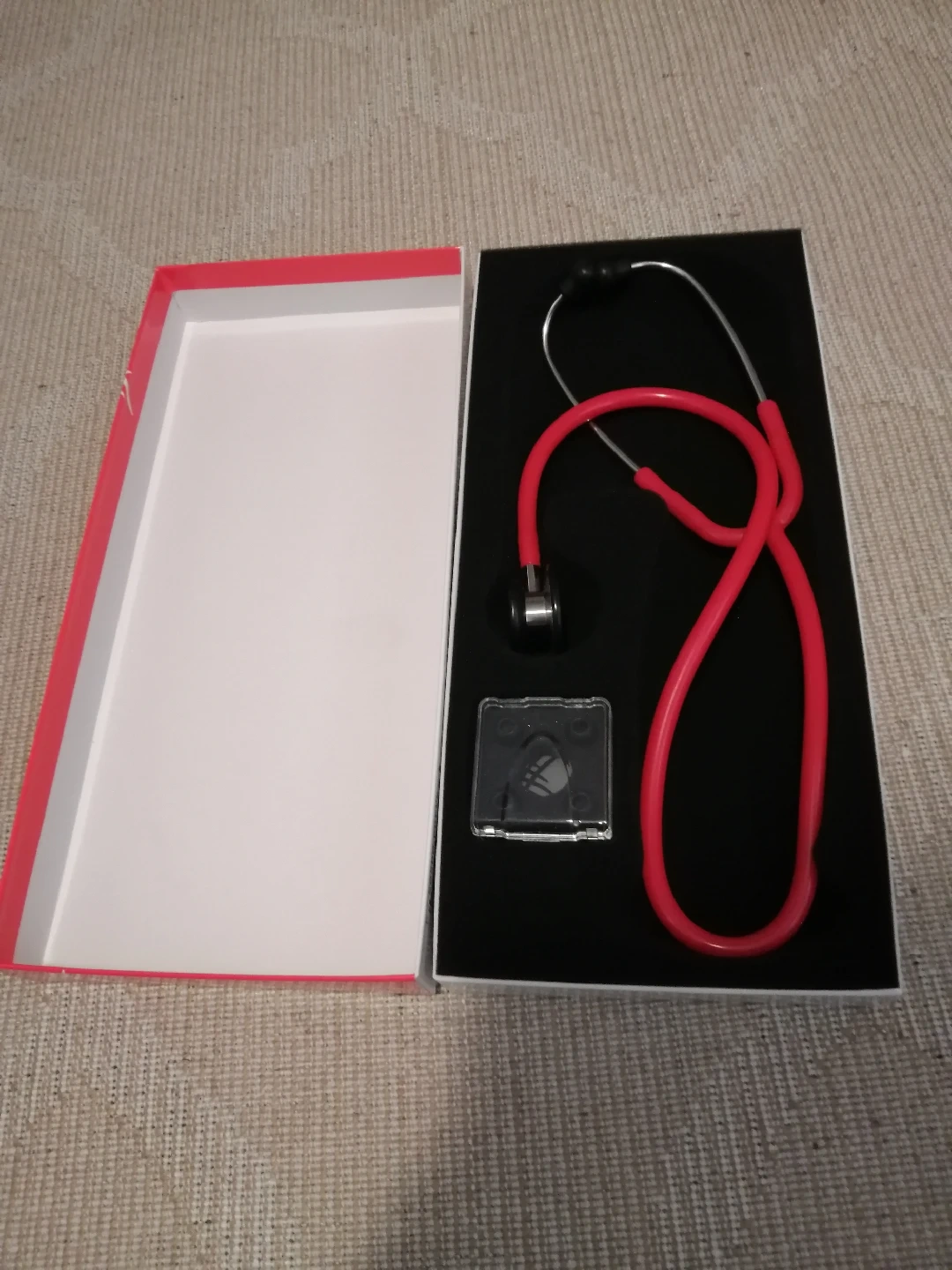 Selling a brand new Cardinal Health adult stethoscope and aneroid sphygmomanometer (blood pressure kit)! The stethoscope is a stainless, dual-head, red model. The kit comes with the blood pressure monitor, instruction manual, and a handy carrying case, plus extra eartips for the stethoscope. Everything is still in its original packaging and ready to use!