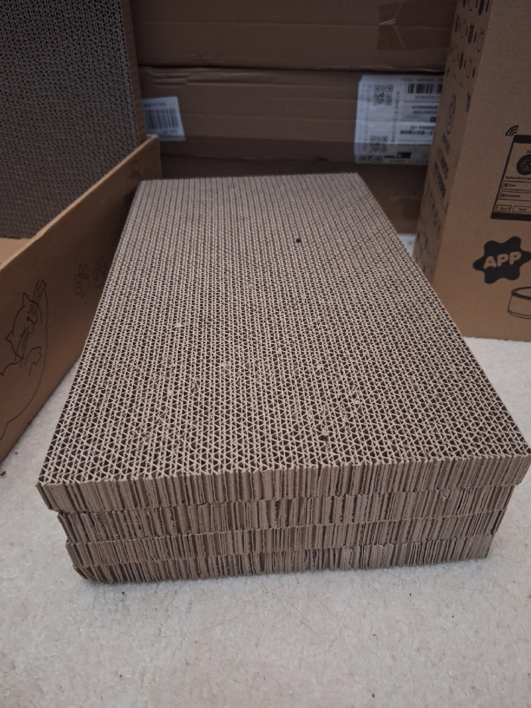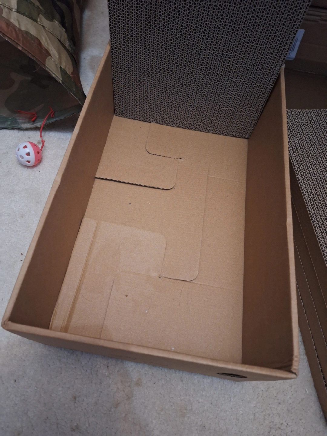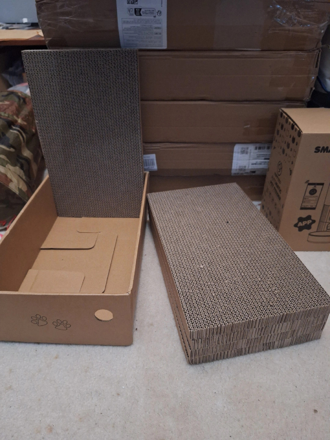 Selling 5 separate scratching pads and a sturdy box to put them in. They're in great condition and ready to make some cats really happy! These scratching pads and box provide a fun and engaging way for your cat to scratch and play. They feature a sturdy cardboard construction and stack nicely on top and inside of the other. $5 each pad or the box π¦ $25 for all of it
