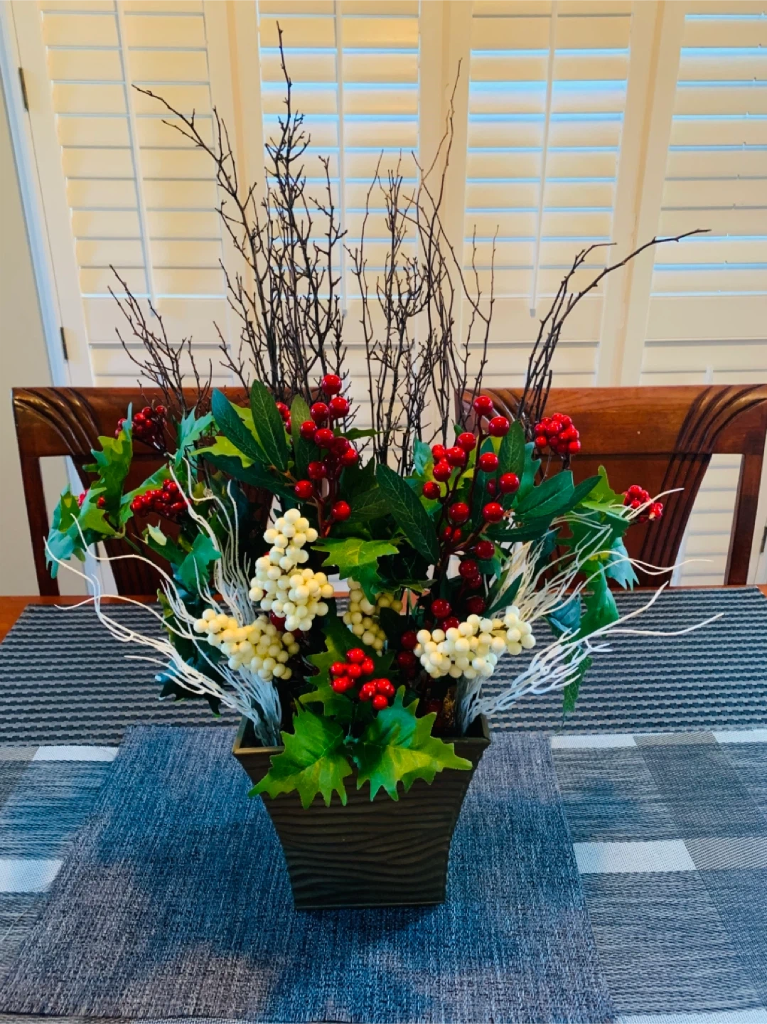 ONE-OF-A-KIND NEWLY Handcrafted Christmas Artificial Planter or Center Piece Decoration. Metal base. Measurements in pictures. $20 CAD FIRM. Smoke free home. MEET-UP LOCATION (no mail. / no delivery): - Public Meet-up: McLean Community Centre (95 Magill Dr. Ajax corner of Westney/Magill)… OR … - Door Pickup: 1 block from the Centre (address to be provided on the day of pickup) SERIOUS BUYERS ONLY / FINAL SALE / Cash Payment at pickup / NO HOLDS (Items will be sold on a FIRST-COME/PAYMENT-FIRST-SERVE basis!)