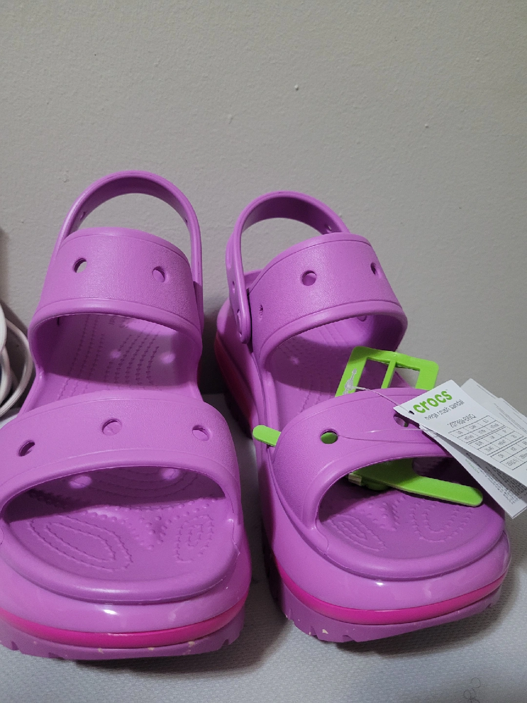 🌞Selling a brand new pair of Crocs Mega Crush Sandals 🌞! They're a women's size 9, which is equivalent to a men's size 7 . 🌞These sandals are super stylish and comfortable, perfect for adding a little height to your summer or vacation look!